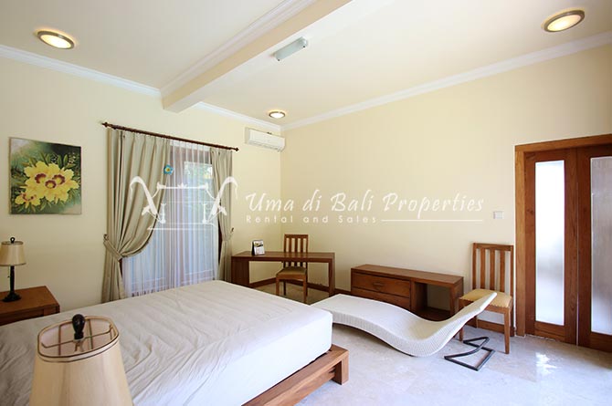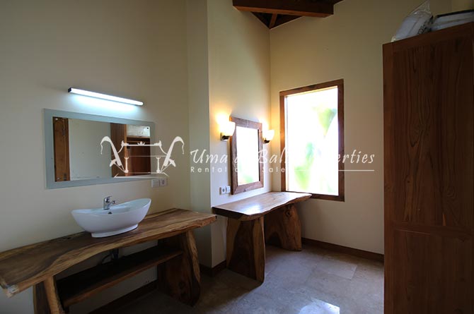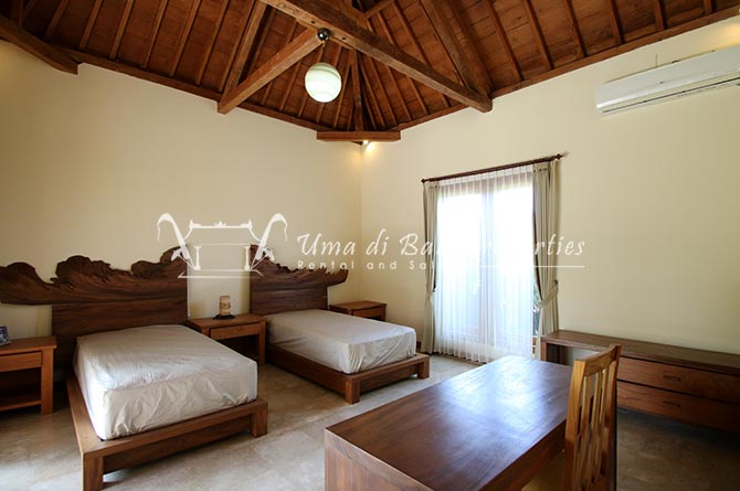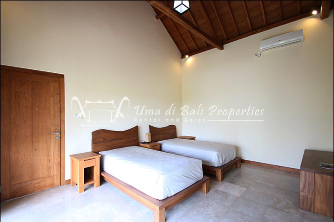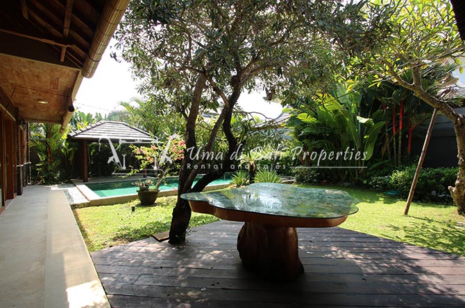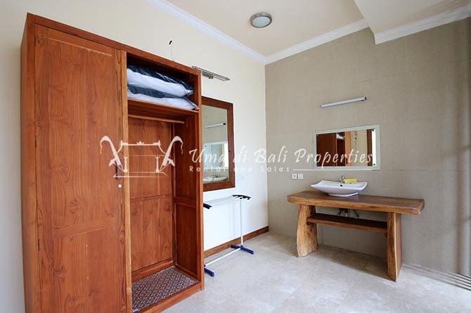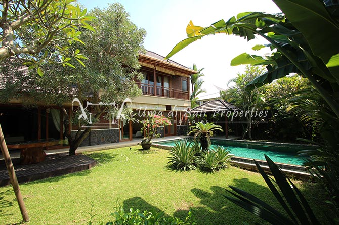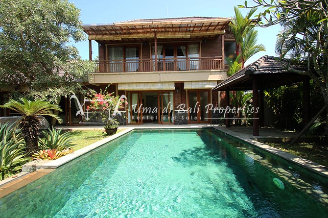 This villa located in good location in Berawa. Close to Finn’s Beach Club in Berawa Beach, Canggu Club, Canggu Community School, some famous restaurants, and many public places in the area. Within short walking distance to the beach this villa has specifications of 3 bedrooms, 3 bathrooms, swimming pool, garden, close living room, kitchen, storage, and private parking port. All furniture is made of teak wood which makes the artistic value higher, along with views of rice fields
