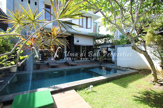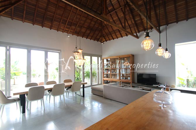 Discover this amazing fully stuffed modern property, located minutes away from an enormous amount of restaurants, cafes, shops, to the nearest Berawa Beach and Finns Beach Club. This double-story modern building has a nice design and style. It sits on 233 m2 land with the first-floor area 116 m2 the second-floor area 139 m2. It consists of three bedrooms, 4 bathrooms, an enclosed living room, a garden, a carport, a dining area and a swimming pool. It is one of the comfortable villas for your family to live in Bali.
