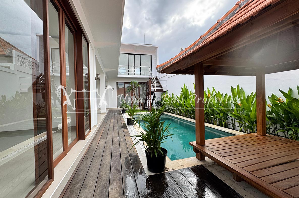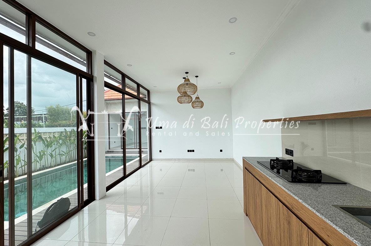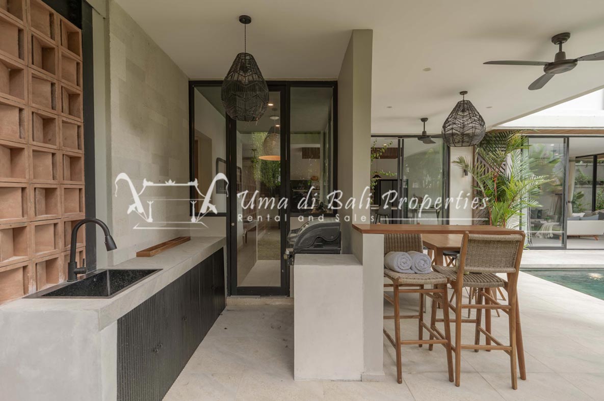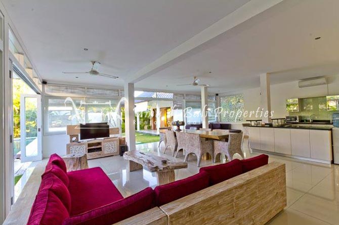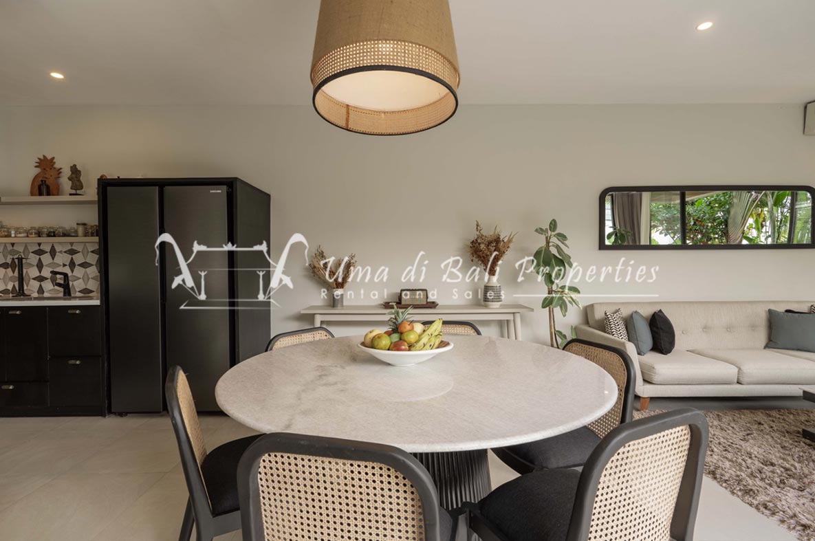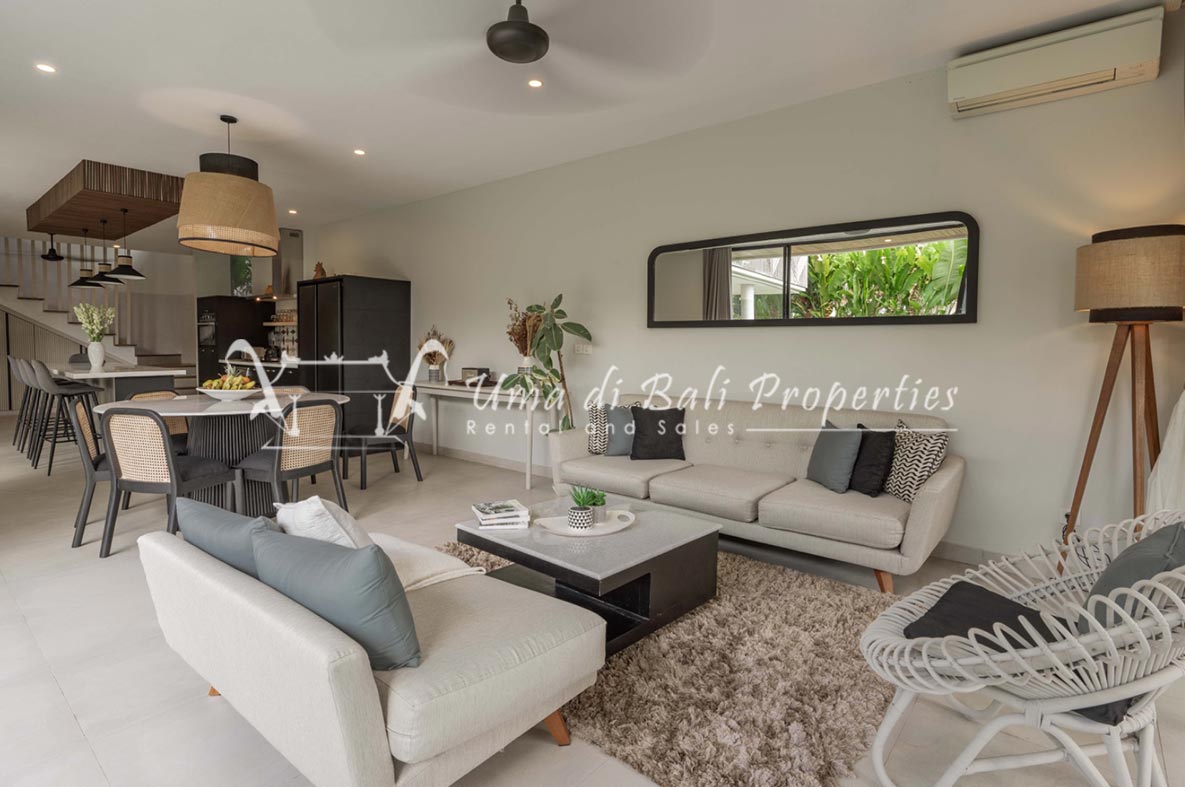 Enjoy stylish, comfortable living in the heart of Berawa with this beautifully designed 5-bedroom villa. Featuring a spacious enclosed living area, fully equipped kitchen, and modern interiors throughout, this property is ideal for families or long-term stays.