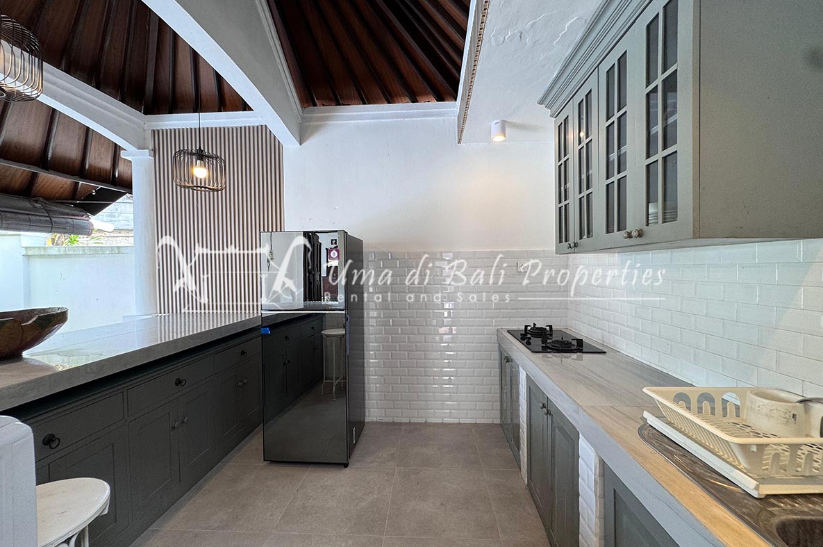 Perfectly located in Canggu area with Rice field view, this quality fully furnished 3 bedroom villa which facilitated with private pool with one way access is currently offered for monthly and yearly rental. It is an easy access to many well known shops, restaurants and also less than 9 minutes drive to beach.
