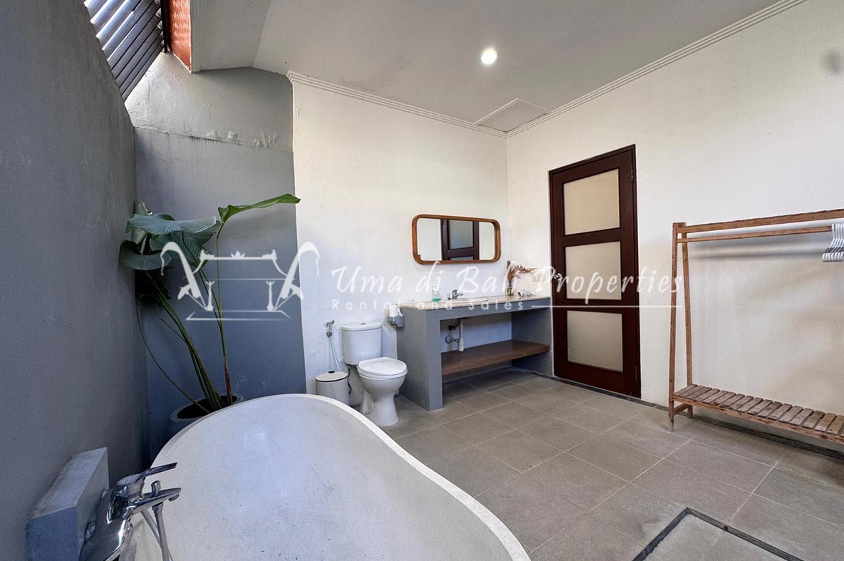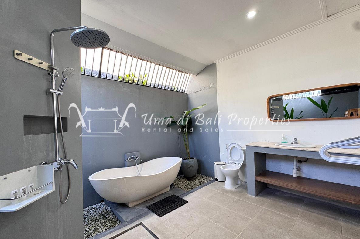 A beautiful 3 bedroom villa located in a quiet area of Umalas is now available for long lease. The villa built on 250 sqm of land size. The villa consists of 3 en-suite bedrooms, kitchen, open living, garden, pool, and parking space
