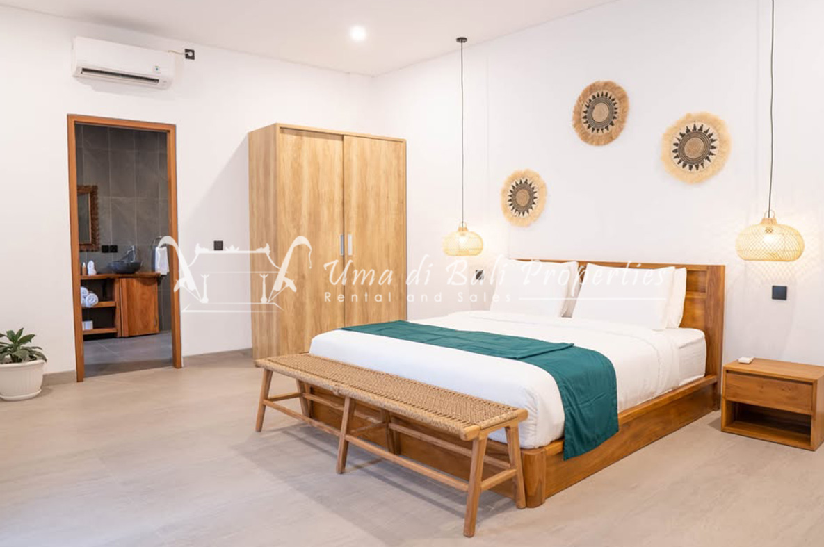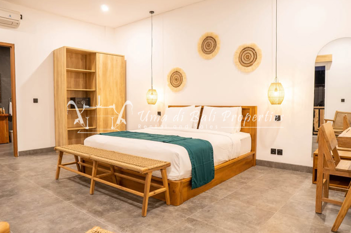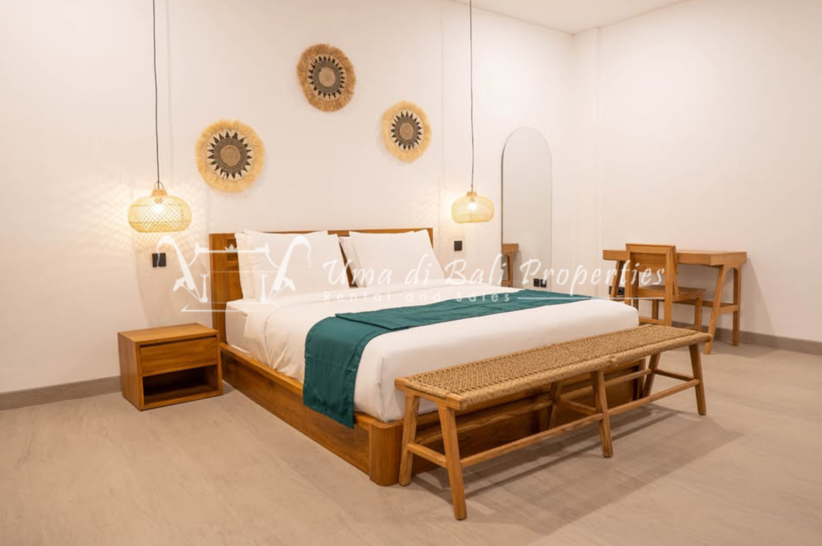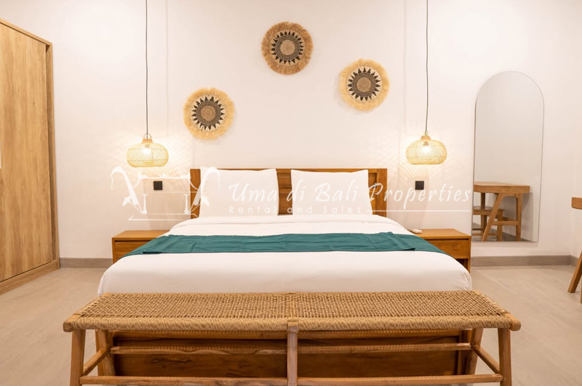 We are pleased to offer an exceptional 1-bedroom apartment for monthly rental, nestled in the serene and stunning location of Pererenan. This apartment comprises a 1 bedroom and 1 bathroom, a cozy living area, an equipped kitchenette, a dining space, a captivating terrace with a seating area, and a refreshing plunge pool that offers an awe-inspiring view of the rice fields.