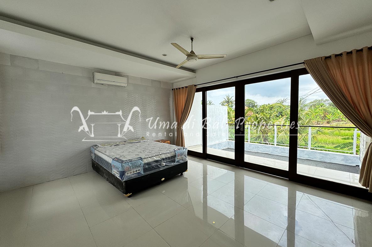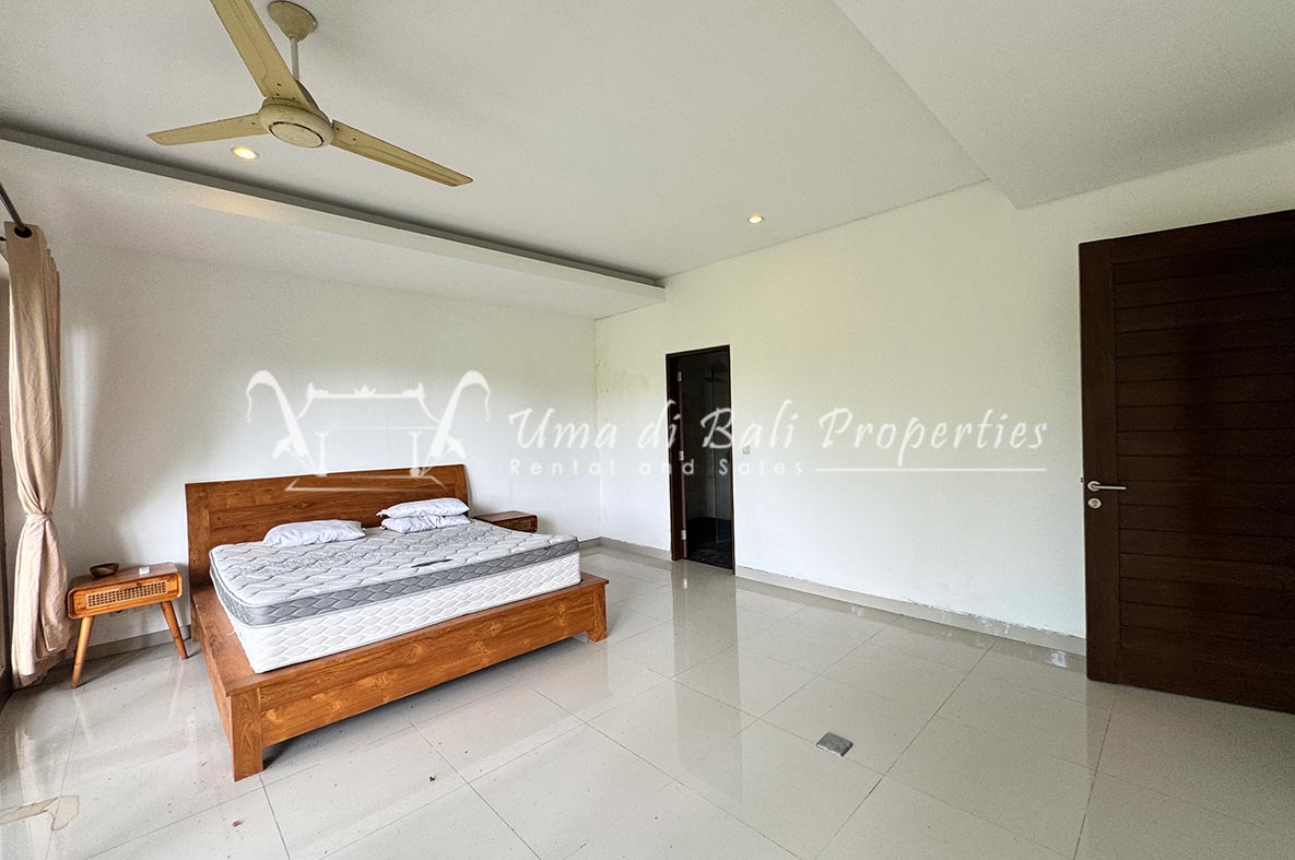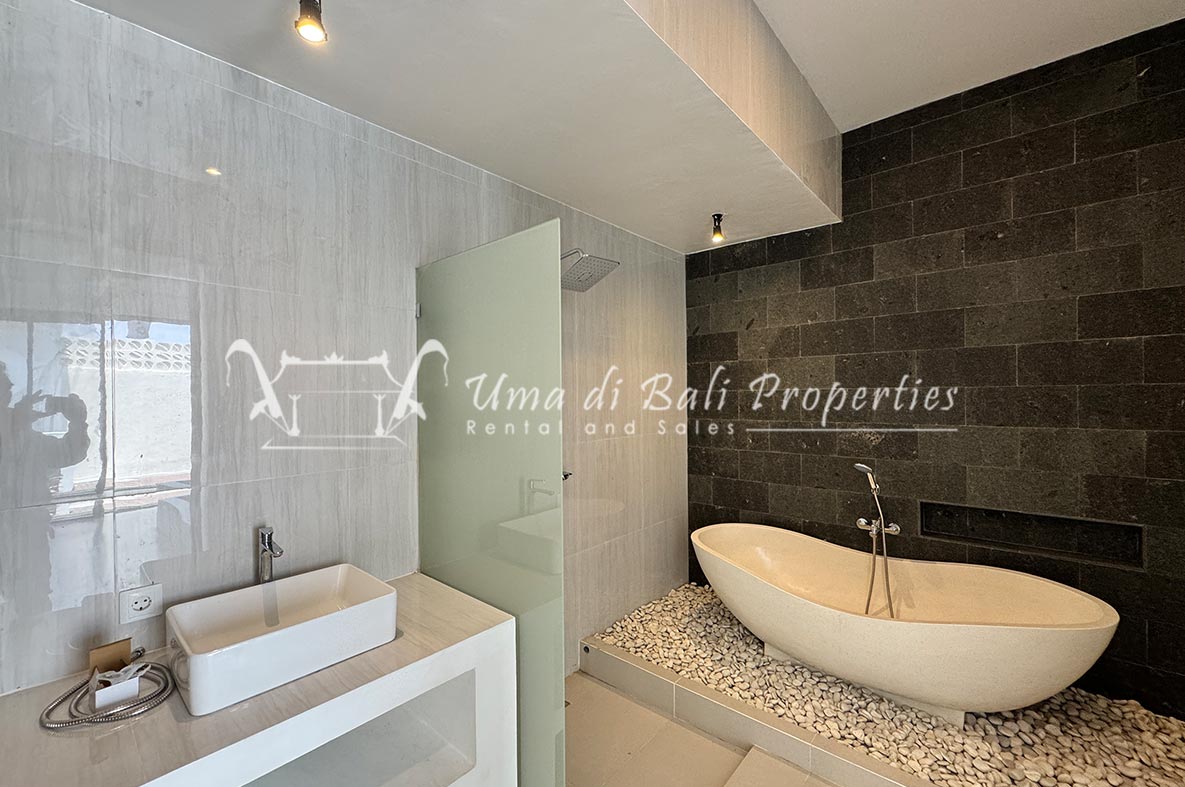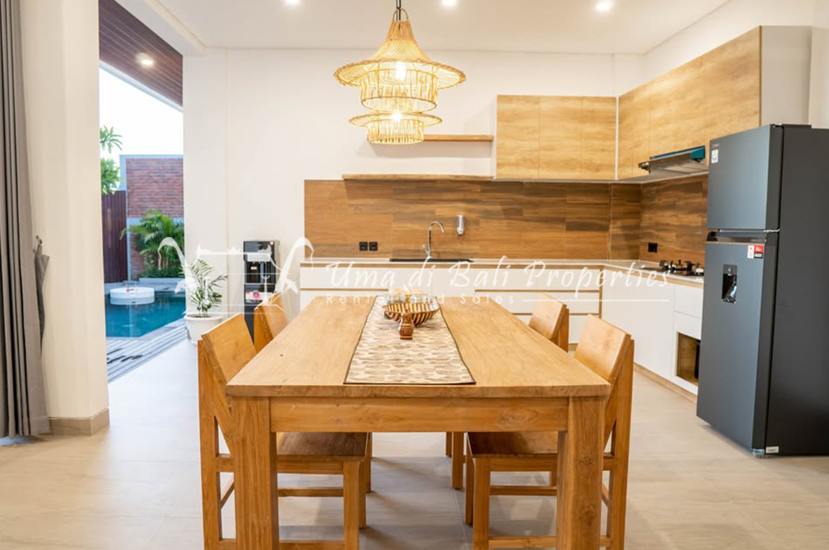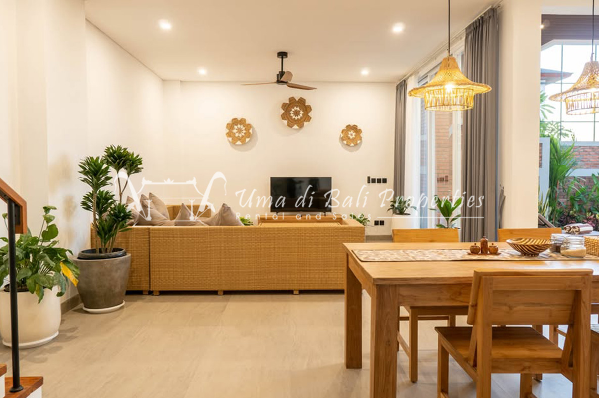 For rent a two-story private villa with 3 bedrooms and a pool, located within a seven-villa private complex in Tumbak Bayuh, Canggu. Available from 25th January 2025. Features spacious bedrooms and enclosed living area with a kitchen. Take advantage of a special discount due to nearby daytime construction