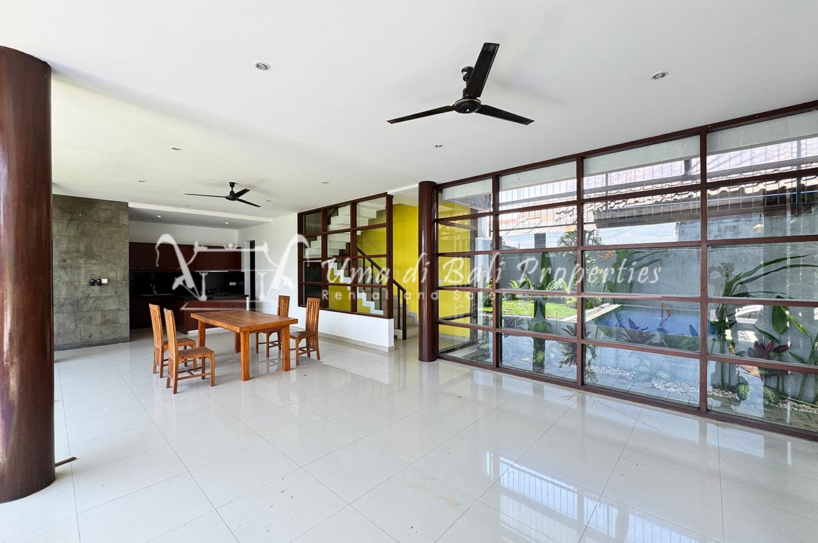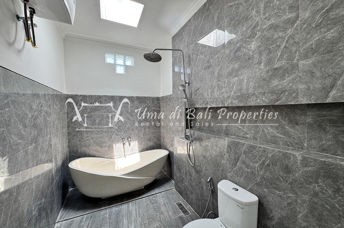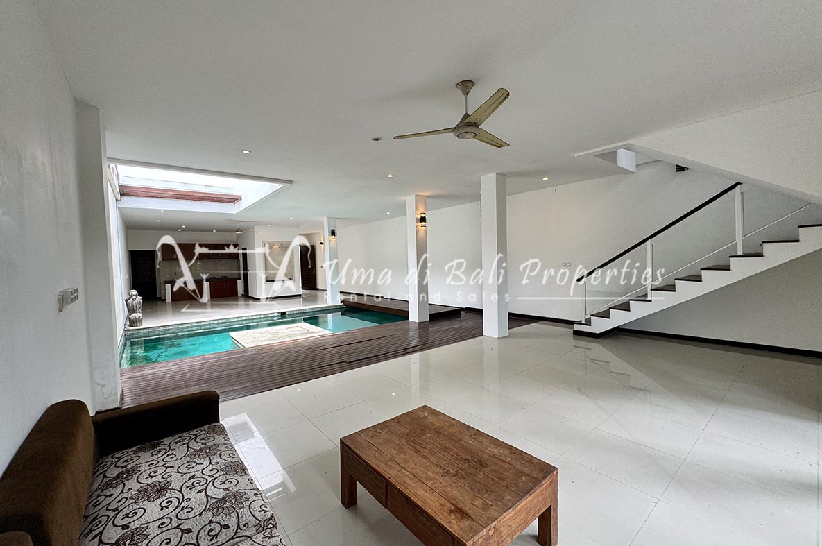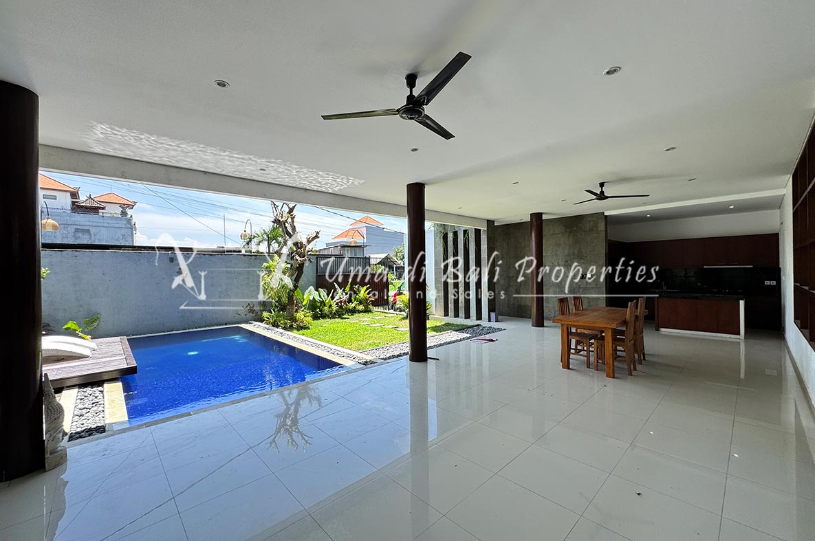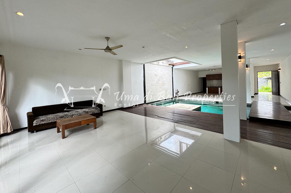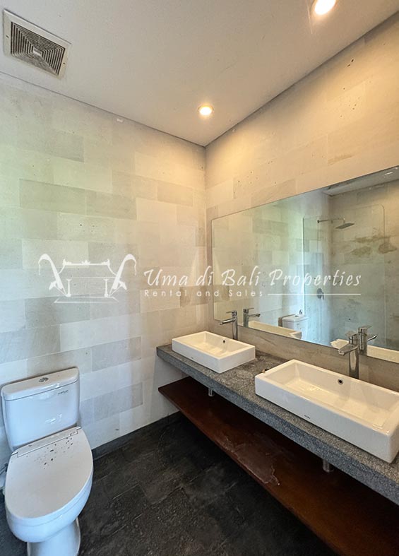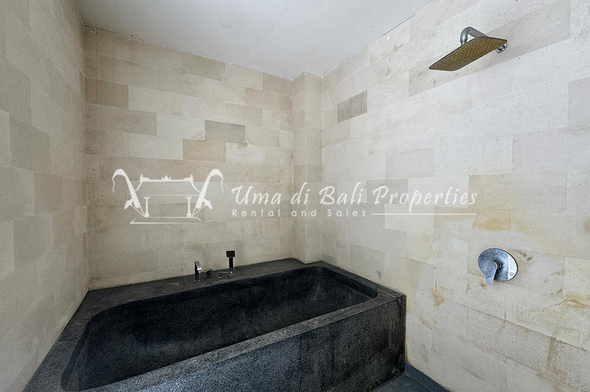 For rent a two-story private villa with 3 bedrooms and a pool, located within a seven-villa private complex in Tumbak Bayuh, Canggu. Available from 25th January 2025. Features spacious bedrooms and enclosed living area with a kitchen. Take advantage of a special discount due to nearby daytime construction