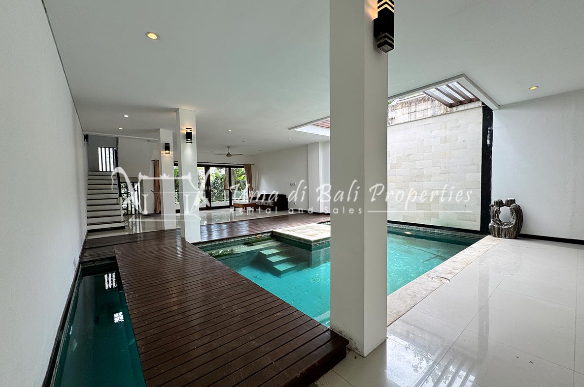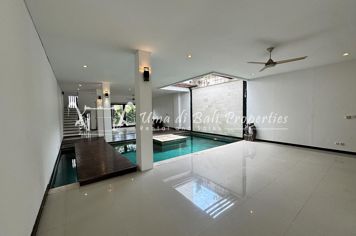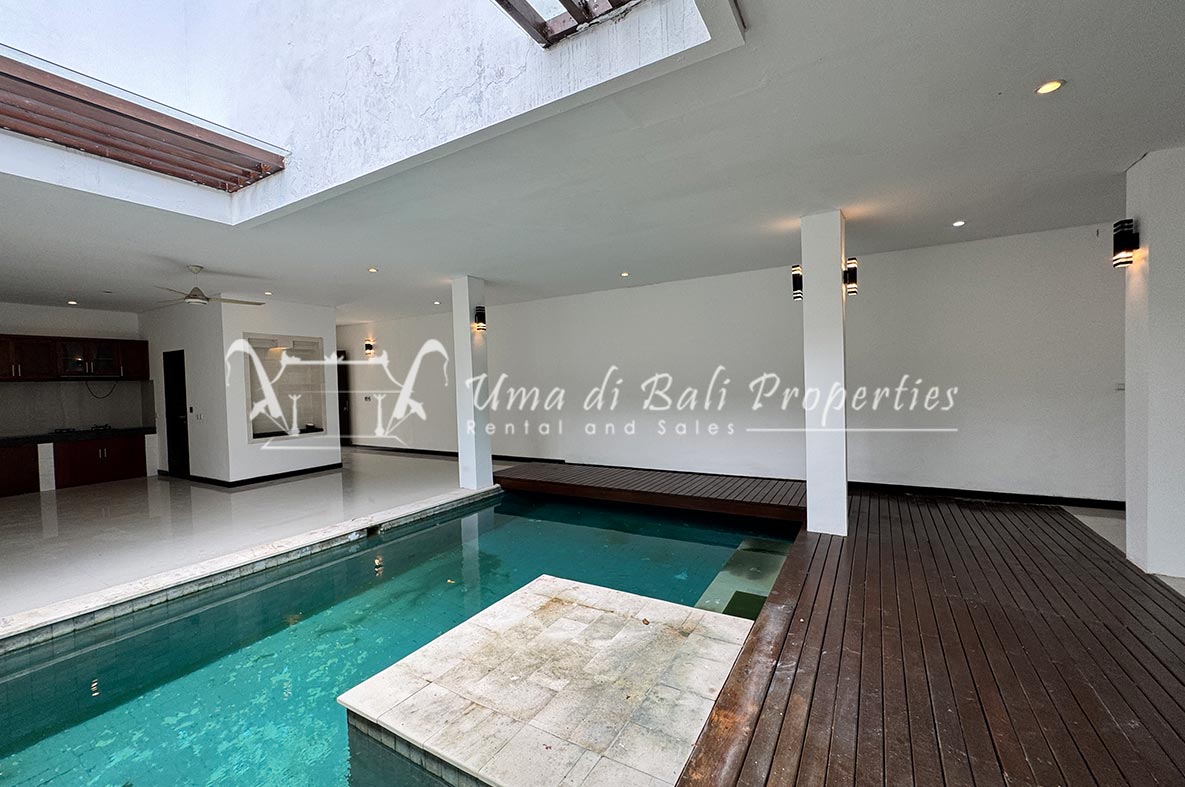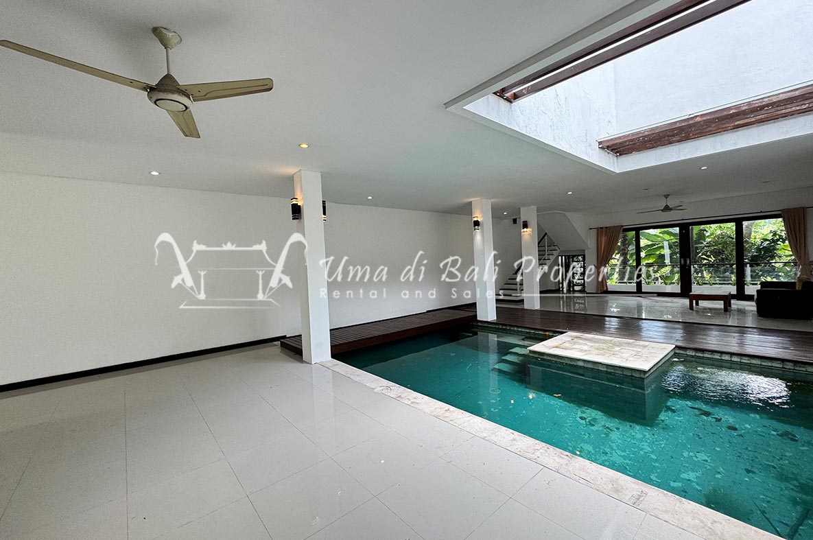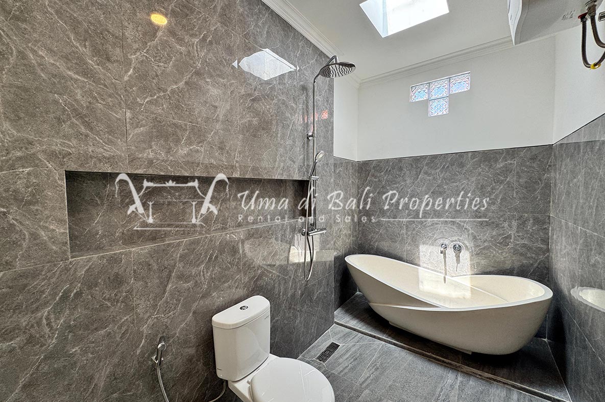 For rent a two-story private villa with 3 bedrooms and a pool, located within a seven-villa private complex in Tumbak Bayuh, Canggu. Available from 25th January 2025. Features spacious bedrooms and enclosed living area with a kitchen. Take advantage of a special discount due to nearby daytime construction