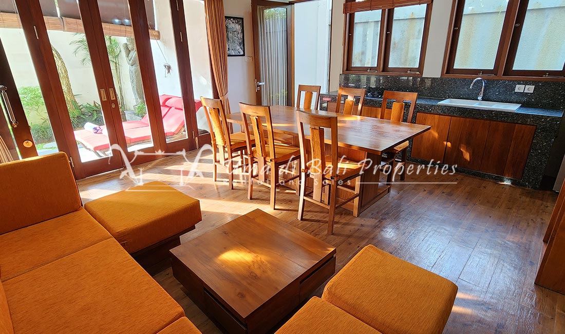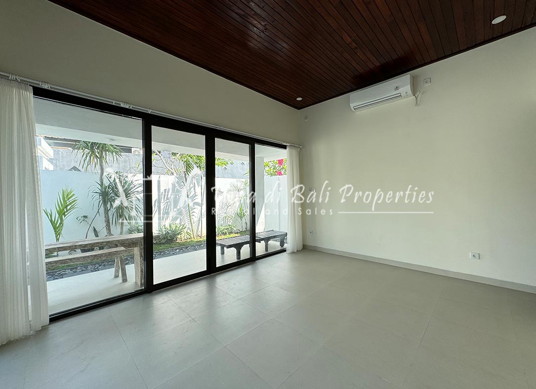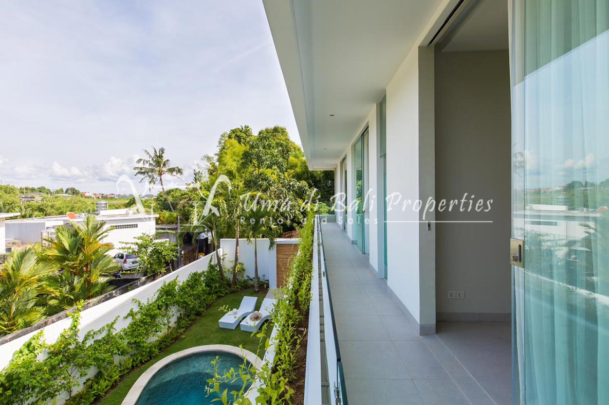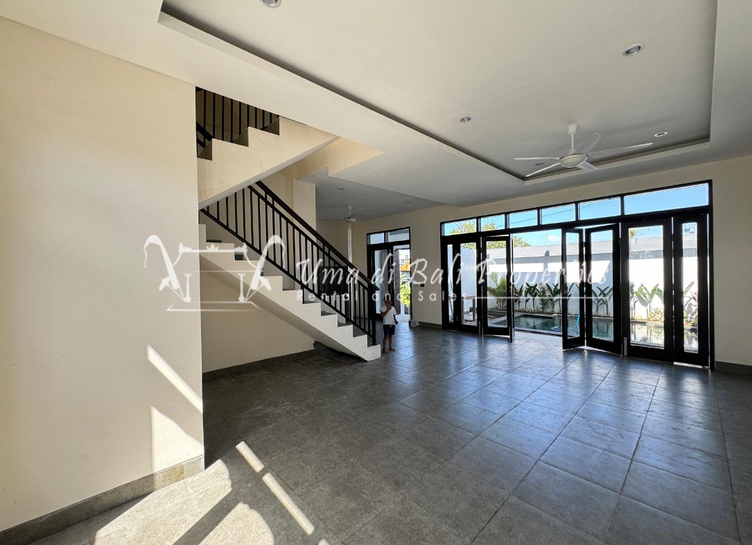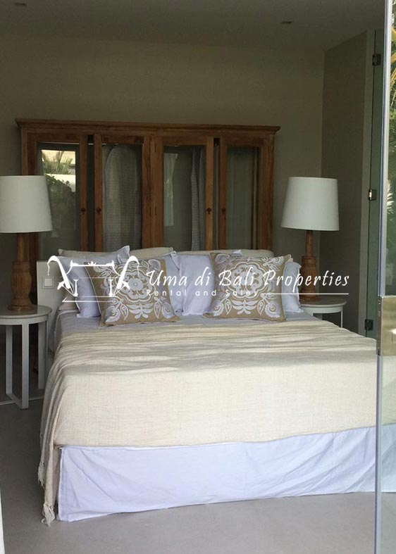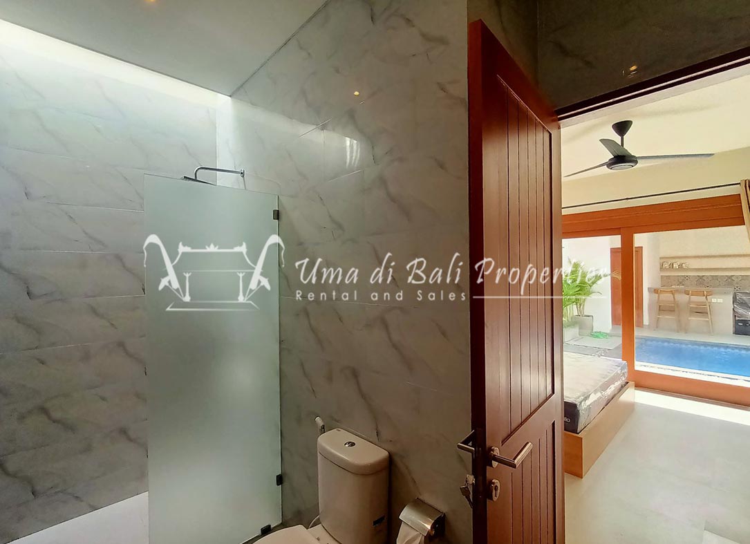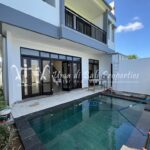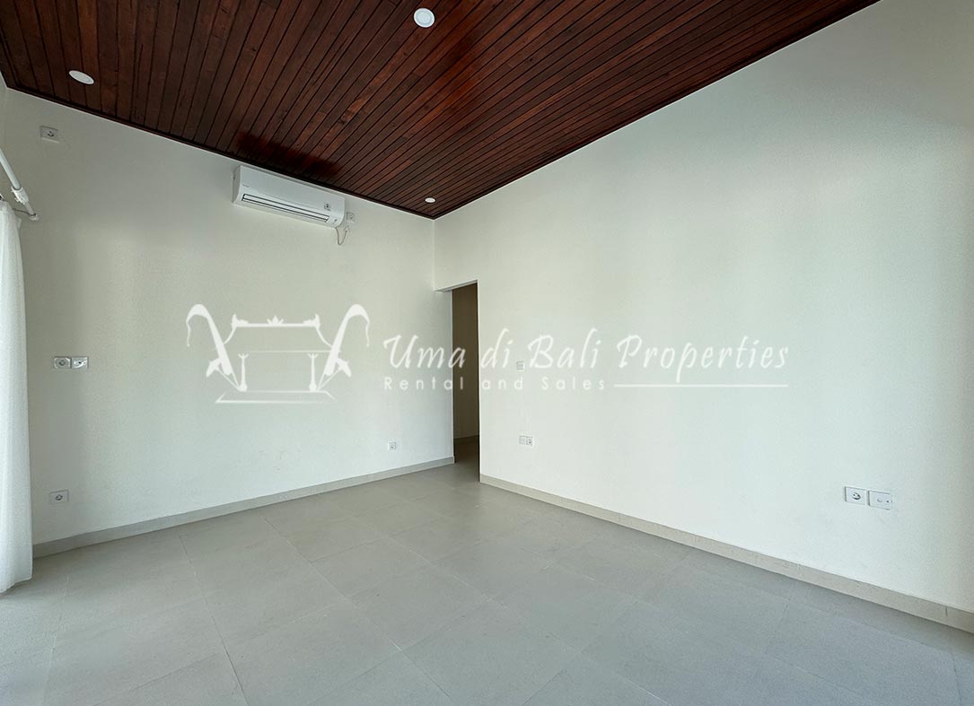 Stunning 3-bedroom long term rental Villa in Umalas area. This yearly rental villa is a modern home, complete with garden, swimming pool and various tropical plants. The landsize of this beautiful Long Term Rental Villa is 300 m2. There is a fully equipped kitchen with all the modern conveniences; the formal dining area; the cozy TV area and the cozy enclosed living room area. The villa contains 3 bedrooms and each bedroom has its own en suite bathroom and shower. The terrace gives a nice view on the swimming pool with sun deck.