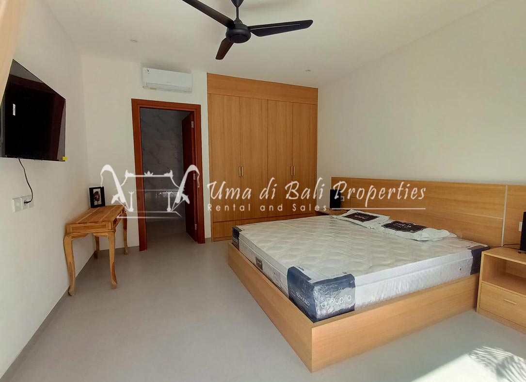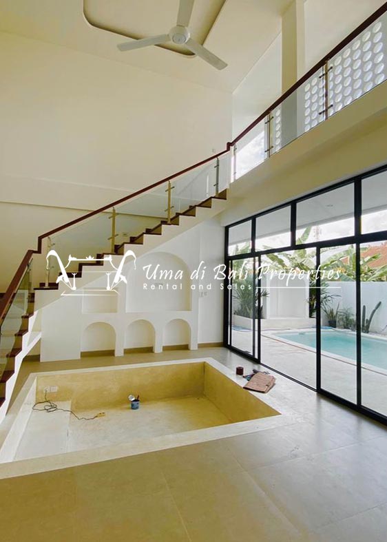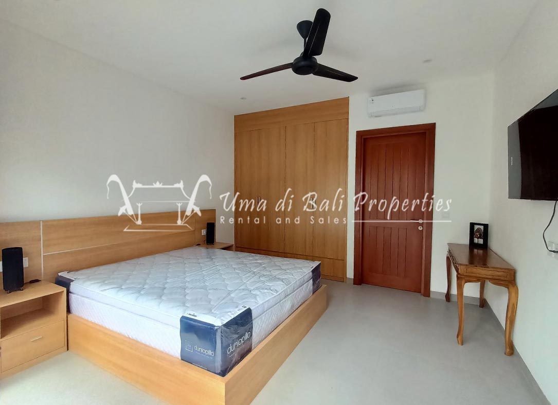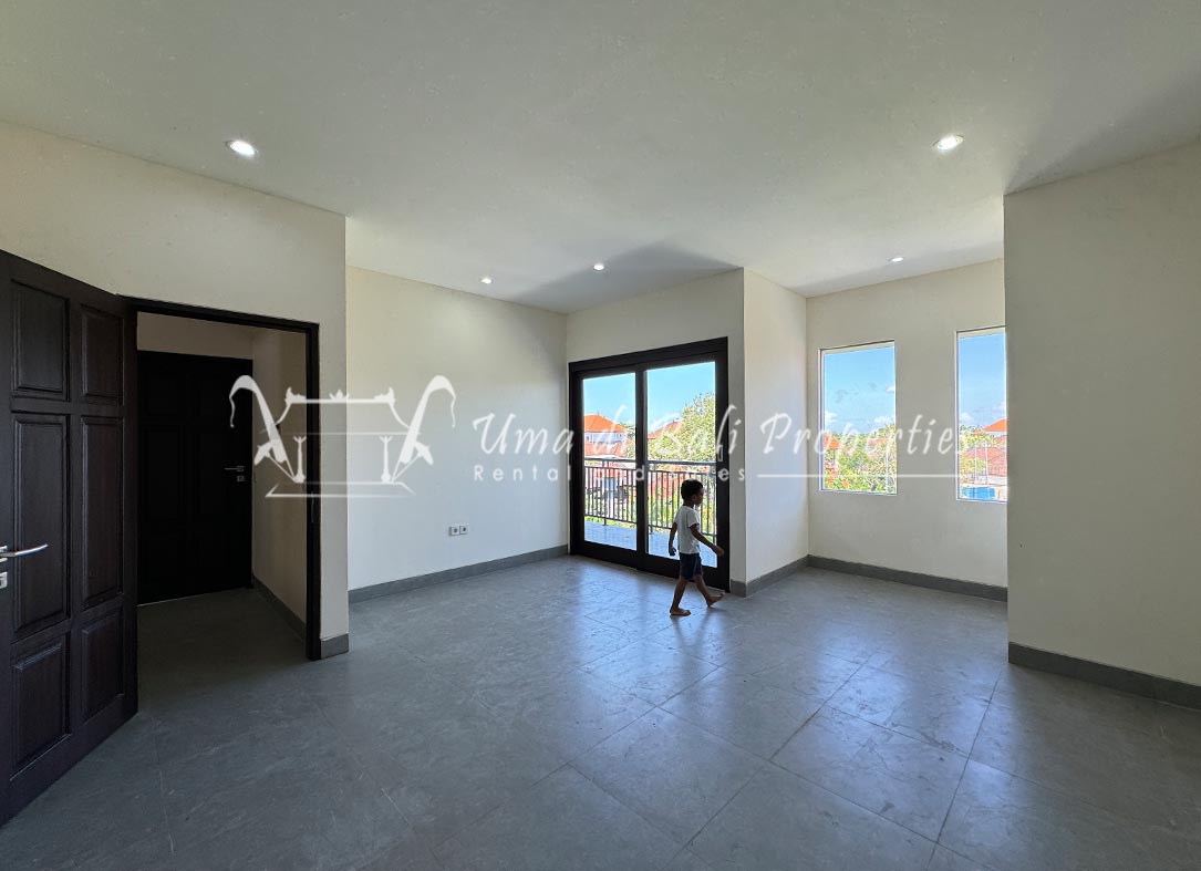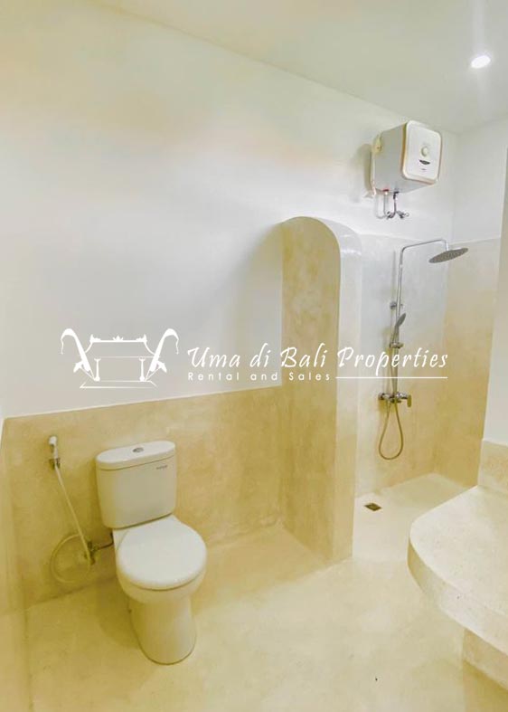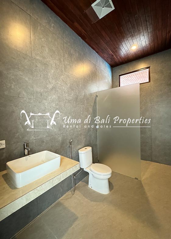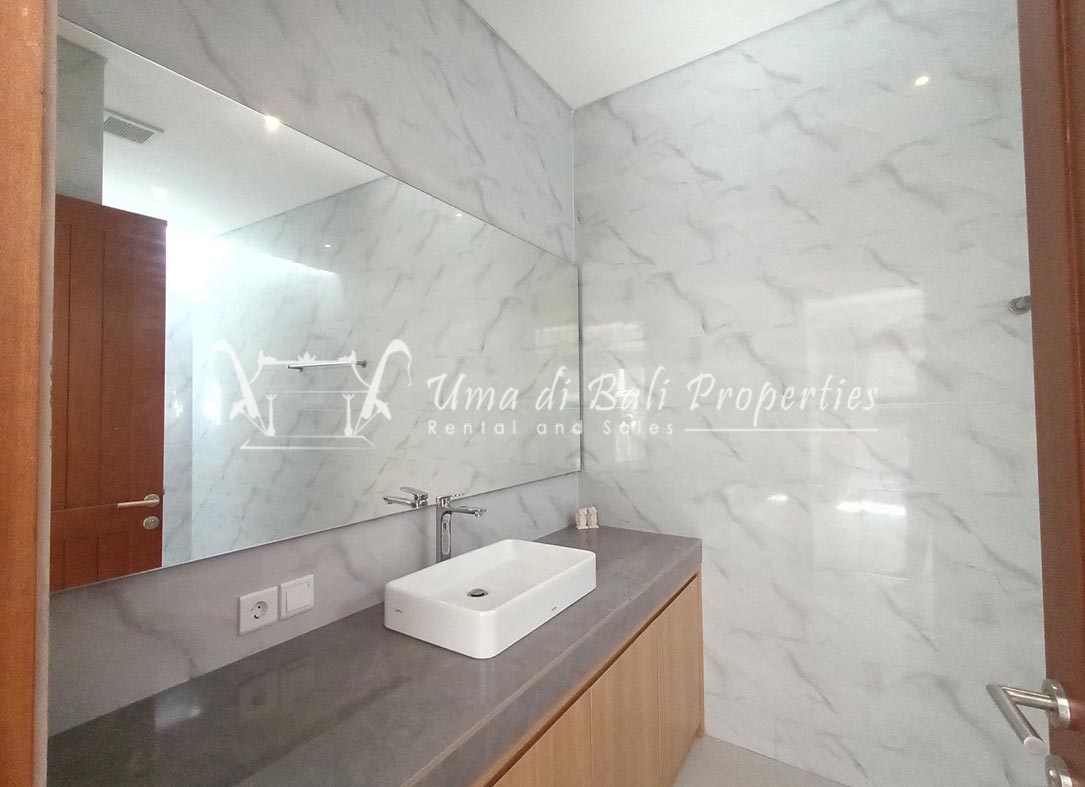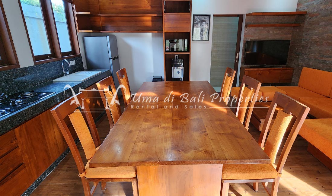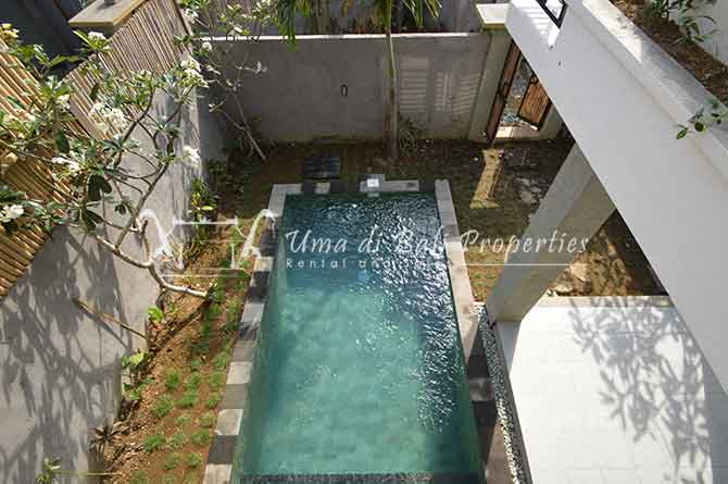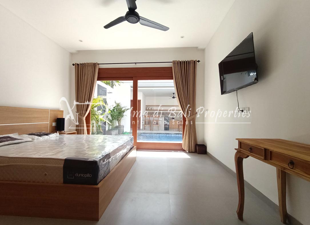 Stunning 3-bedroom long term rental Villa in Umalas area. This yearly rental villa is a modern home, complete with garden, swimming pool and various tropical plants. The landsize of this beautiful Long Term Rental Villa is 300 m2. There is a fully equipped kitchen with all the modern conveniences; the formal dining area; the cozy TV area and the cozy enclosed living room area. The villa contains 3 bedrooms and each bedroom has its own en suite bathroom and shower. The terrace gives a nice view on the swimming pool with sun deck.
