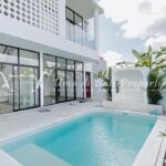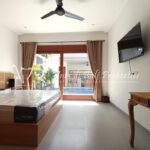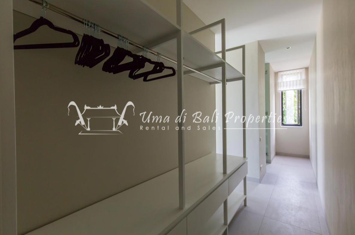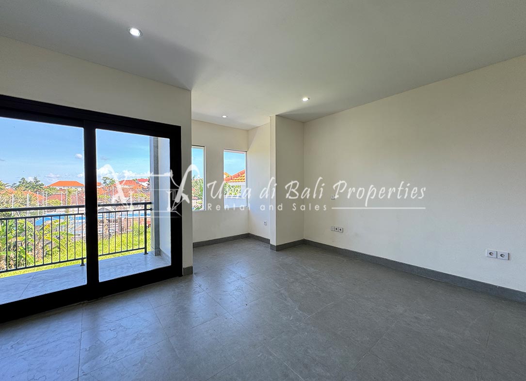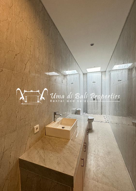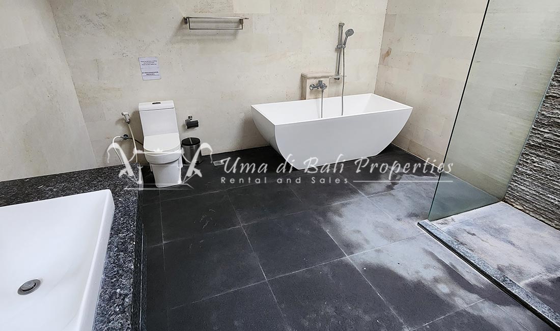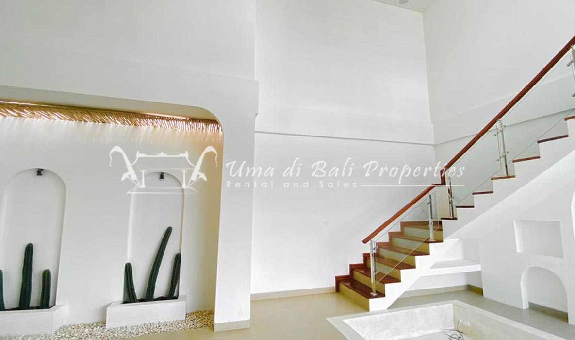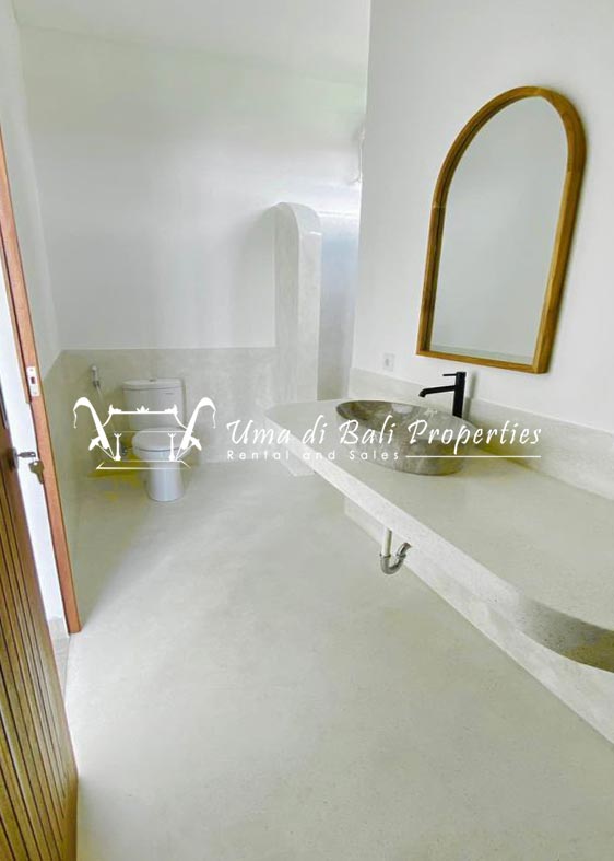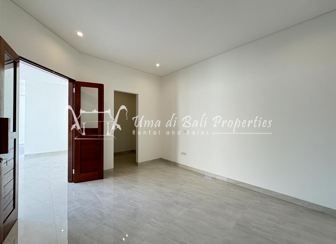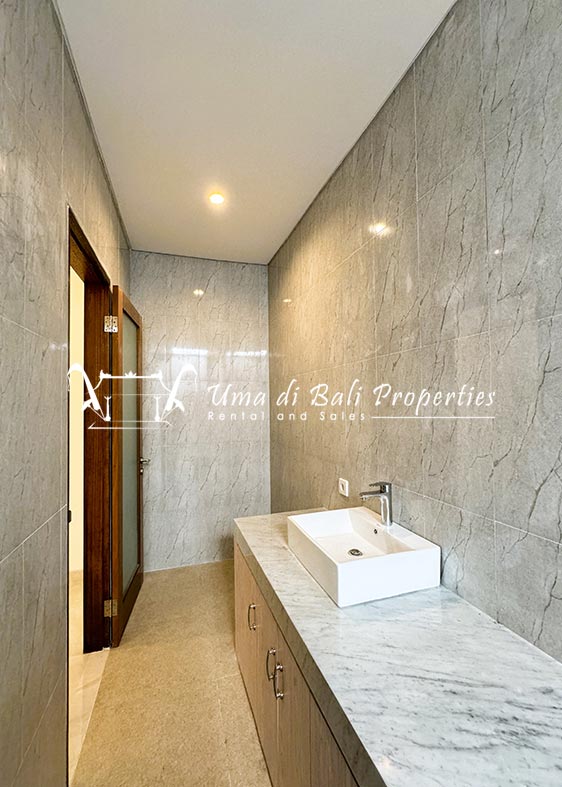 Stunning 3-bedroom long term rental Villa in Umalas area. This yearly rental villa is a modern home, complete with garden, swimming pool and various tropical plants. The landsize of this beautiful Long Term Rental Villa is 300 m2. There is a fully equipped kitchen with all the modern conveniences; the formal dining area; the cozy TV area and the cozy enclosed living room area. The villa contains 3 bedrooms and each bedroom has its own en suite bathroom and shower. The terrace gives a nice view on the swimming pool with sun deck.