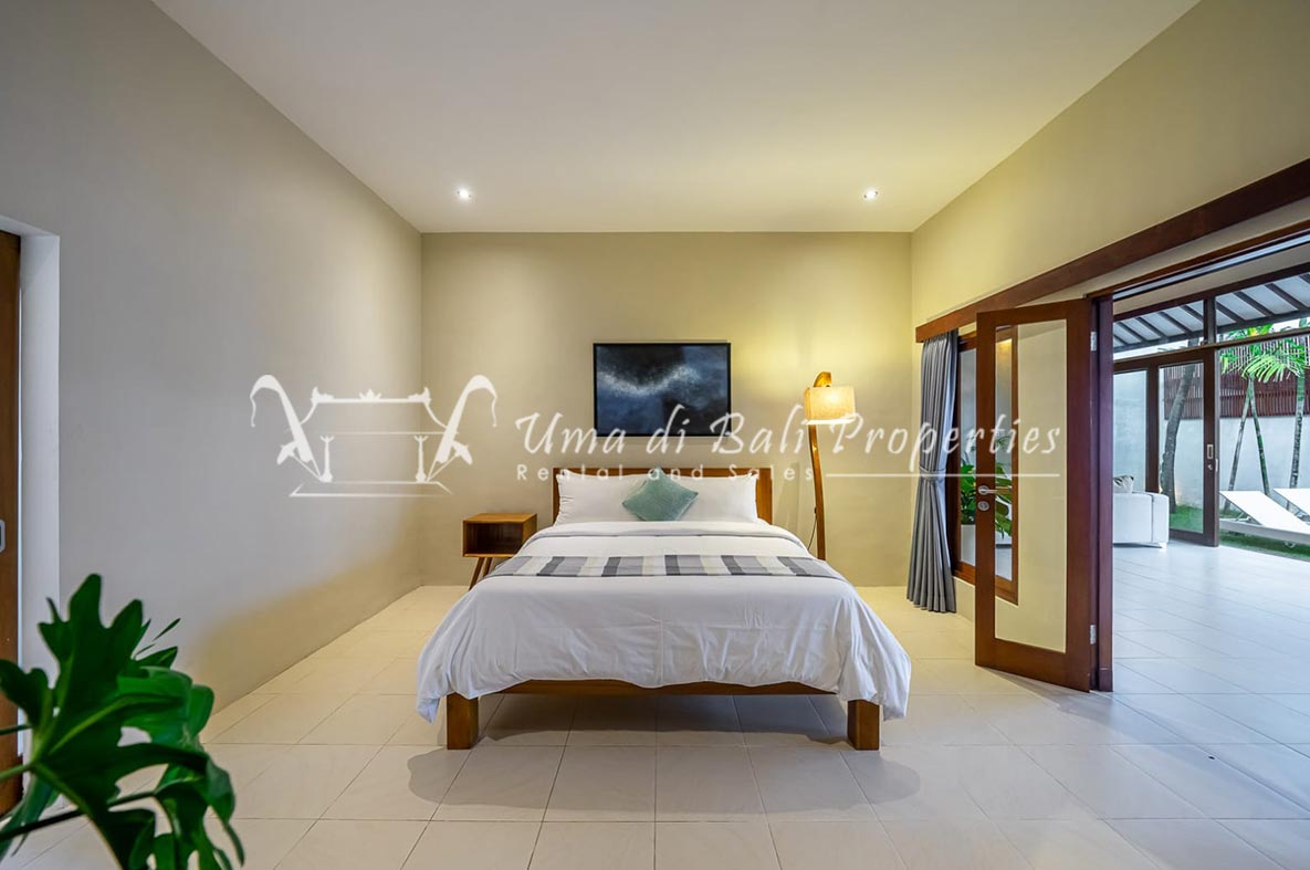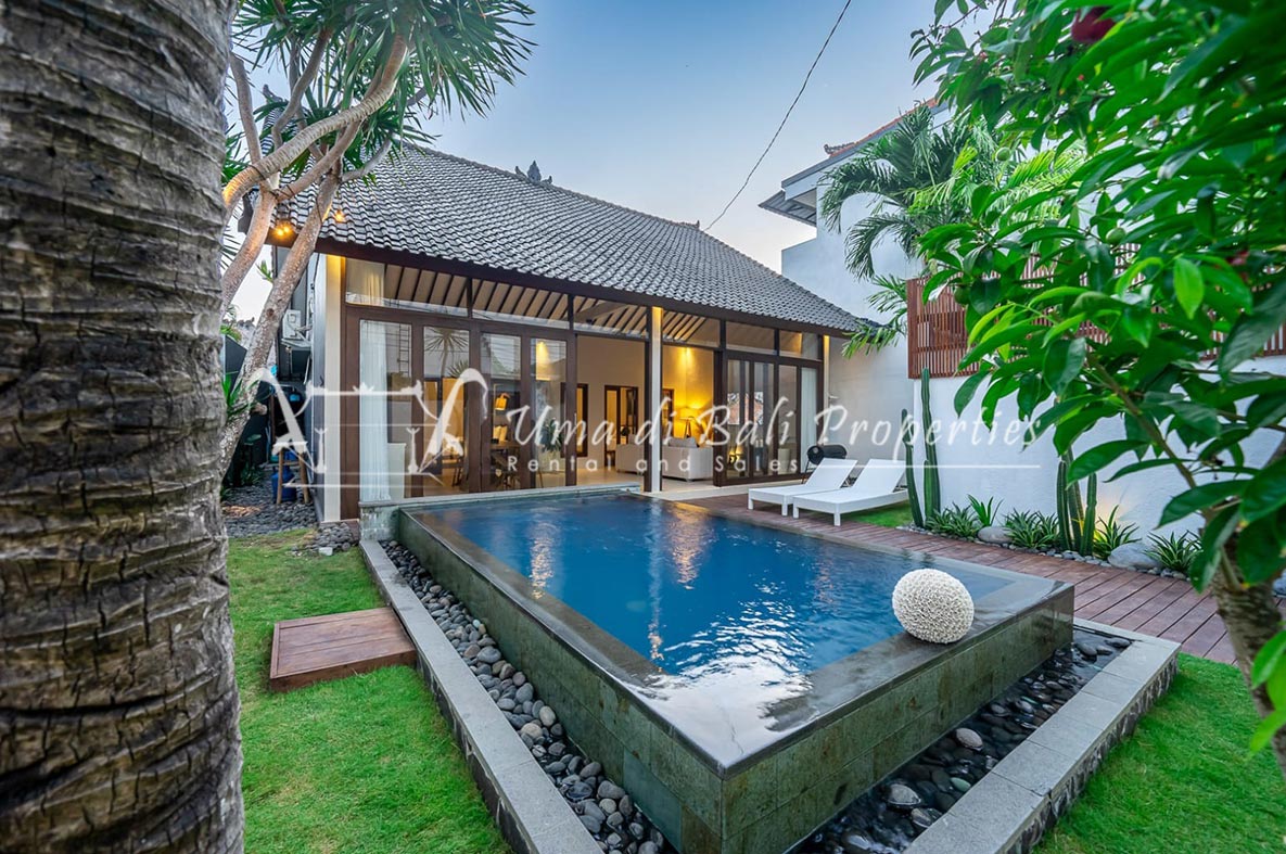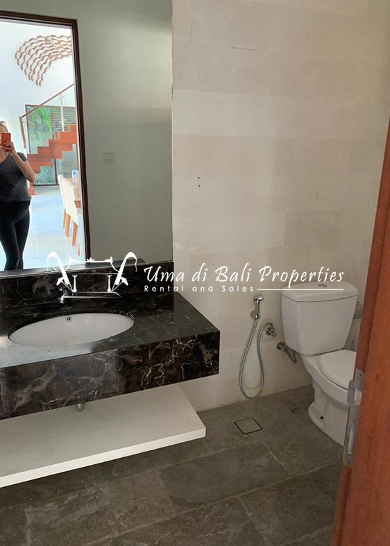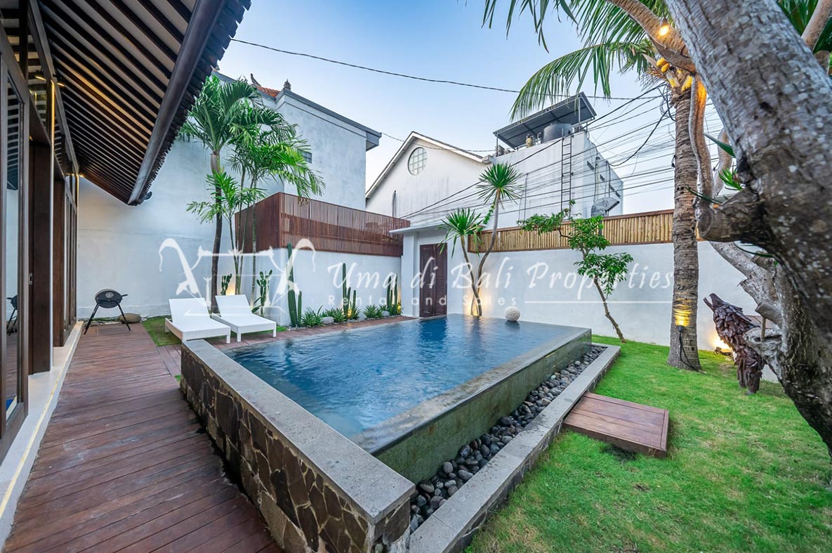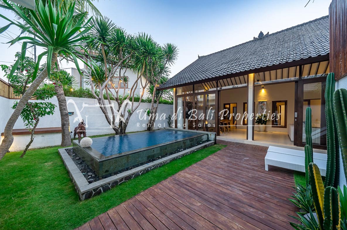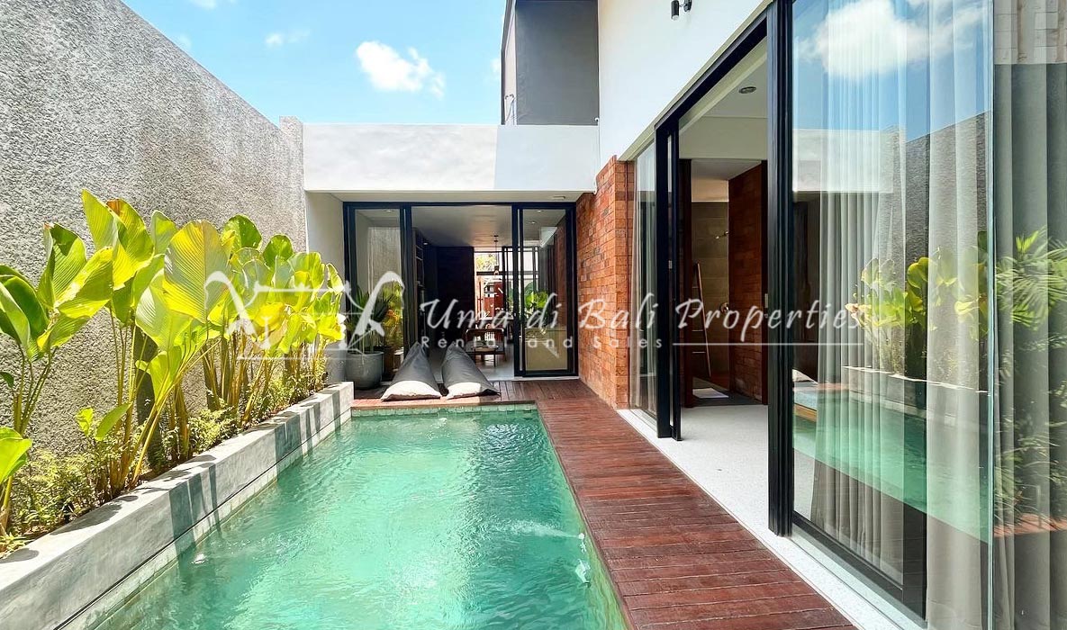Brand new 3 bedroom villa situated in the nice and quiet area of Umalas is now available for yearly rental. The villa was built on 300 sqm of land size. The villa consists of 3 en-suite bedrooms, an open plan kitchen with closed living space, pool, and parking area.