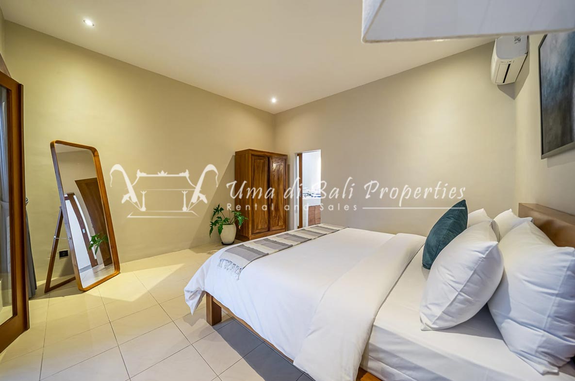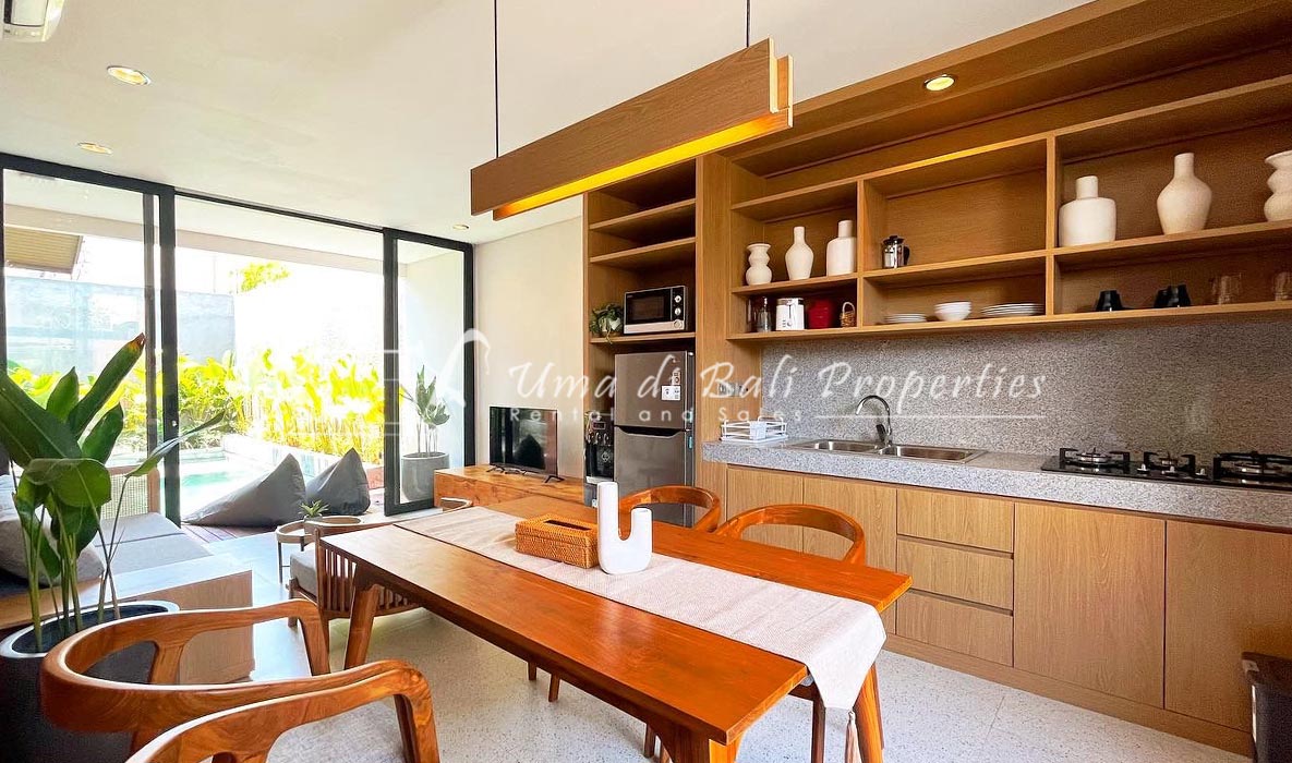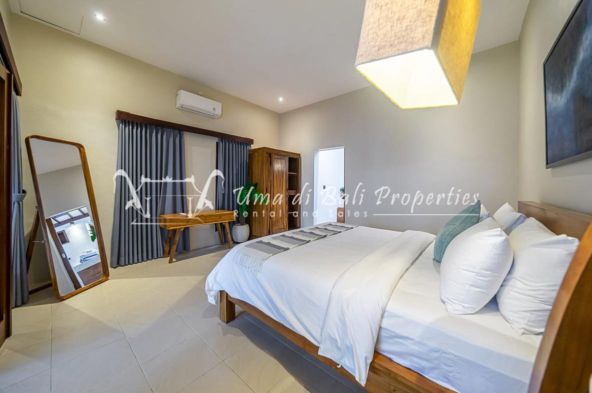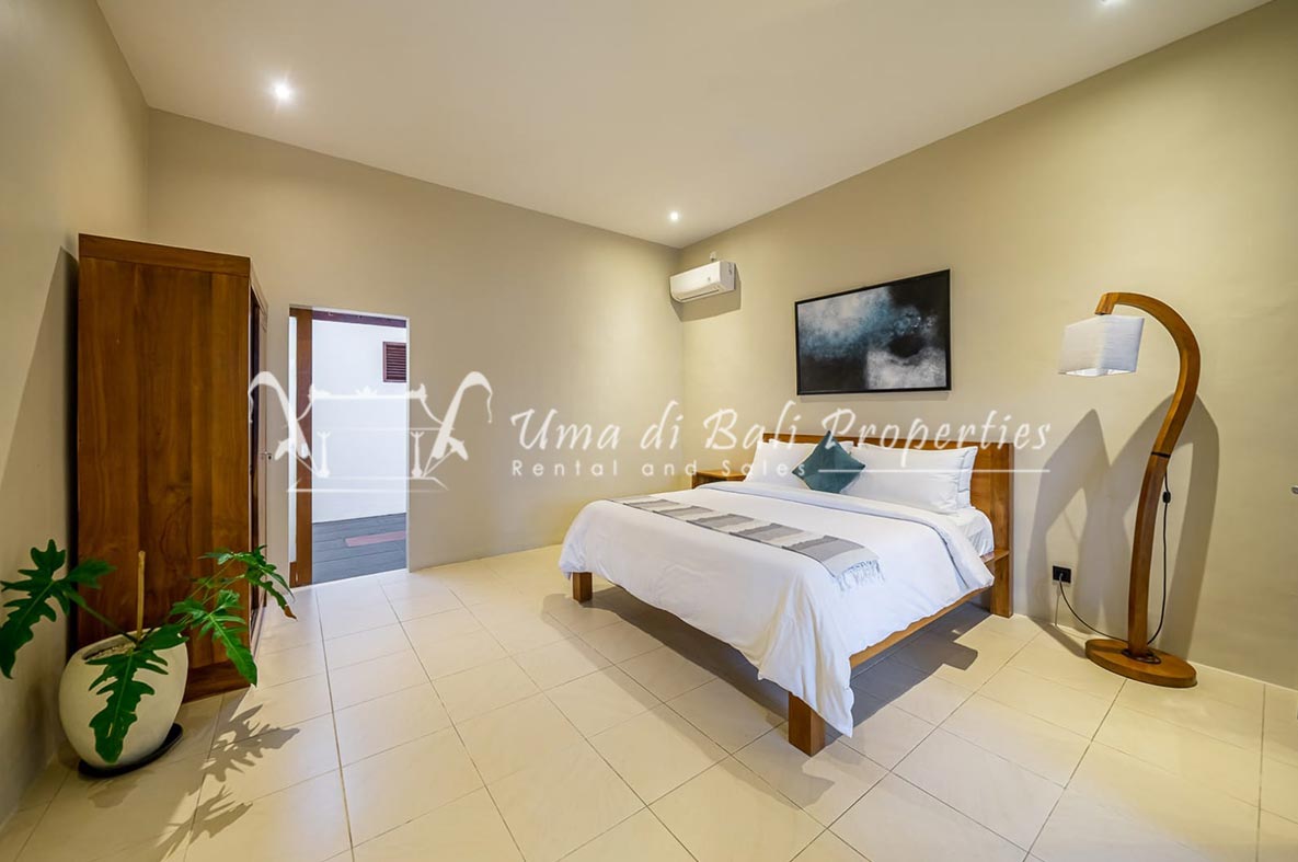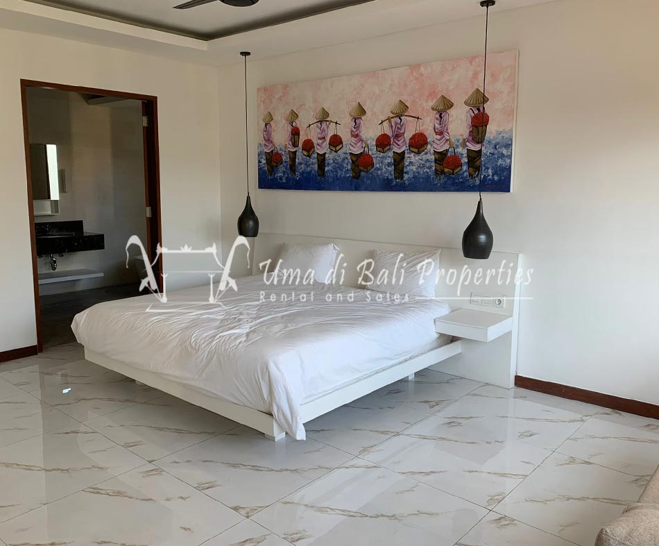 Brand new 3 bedroom villa situated in the nice and quiet area of Umalas is now available for yearly rental. The villa was built on 300 sqm of land size. The villa consists of 3 en-suite bedrooms, an open plan kitchen with closed living space, pool, and parking area.