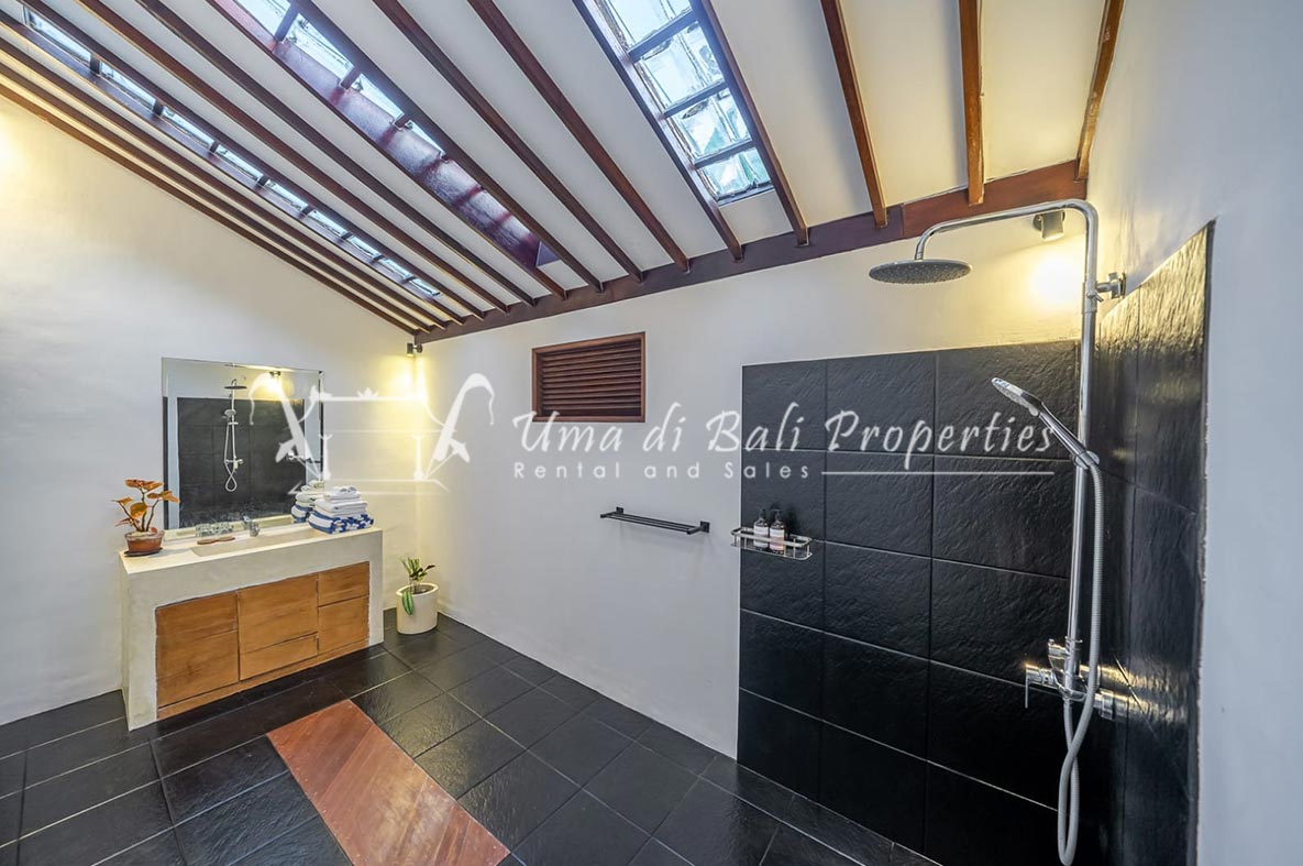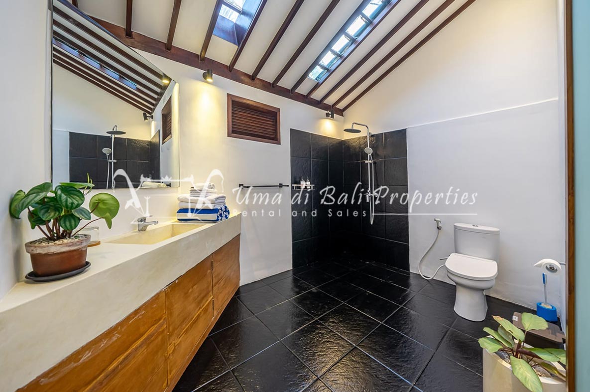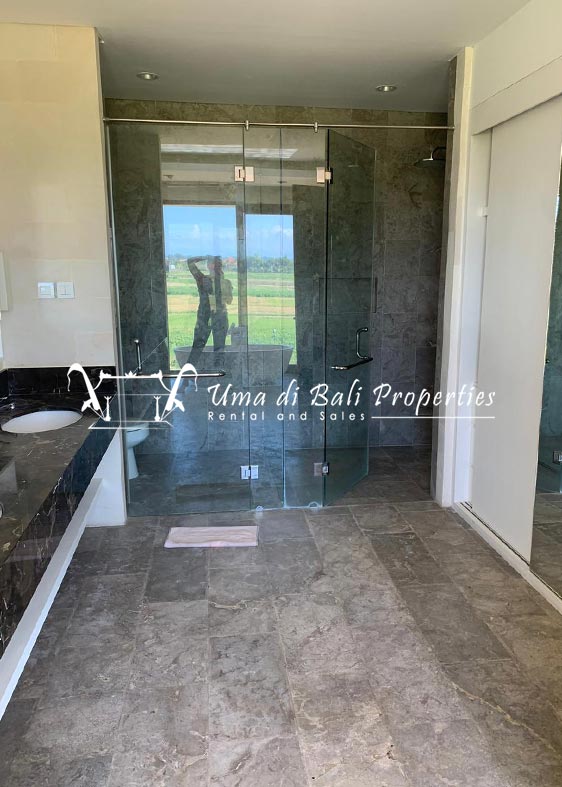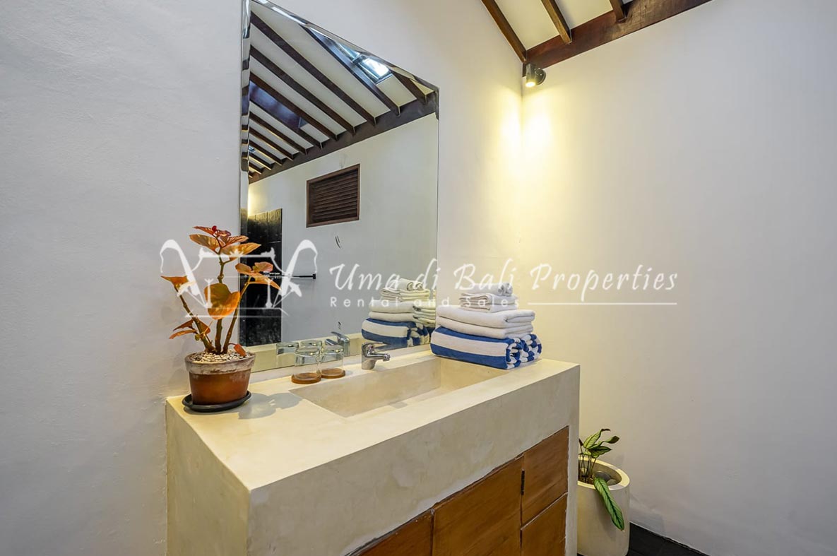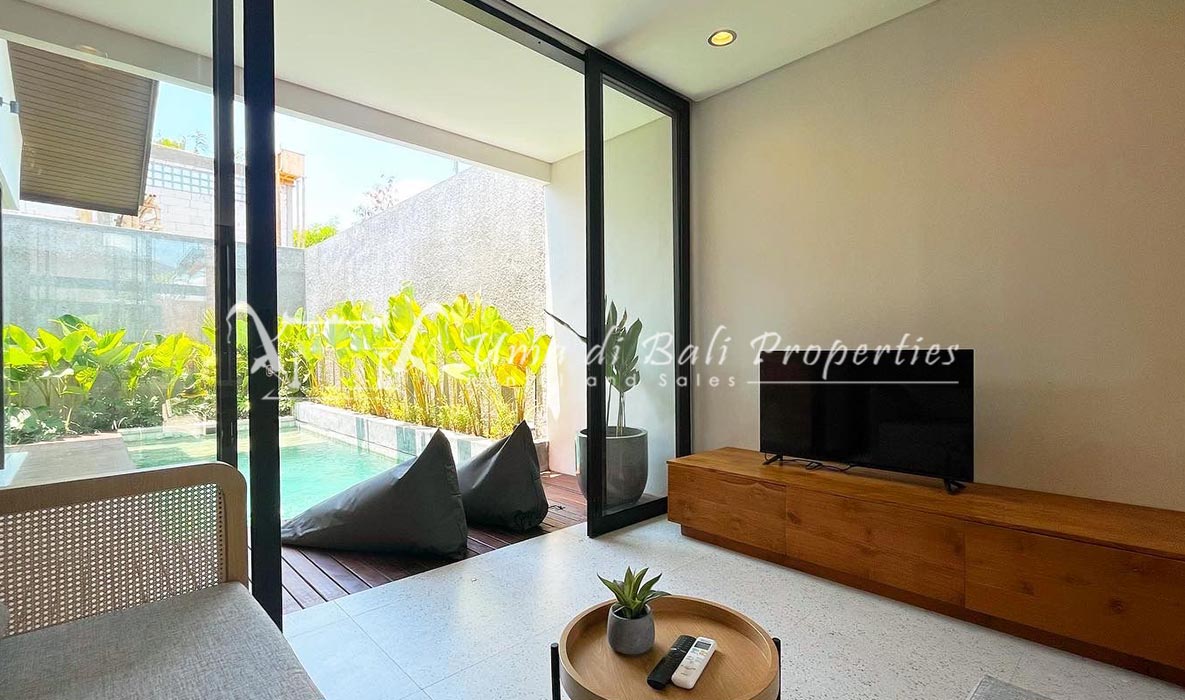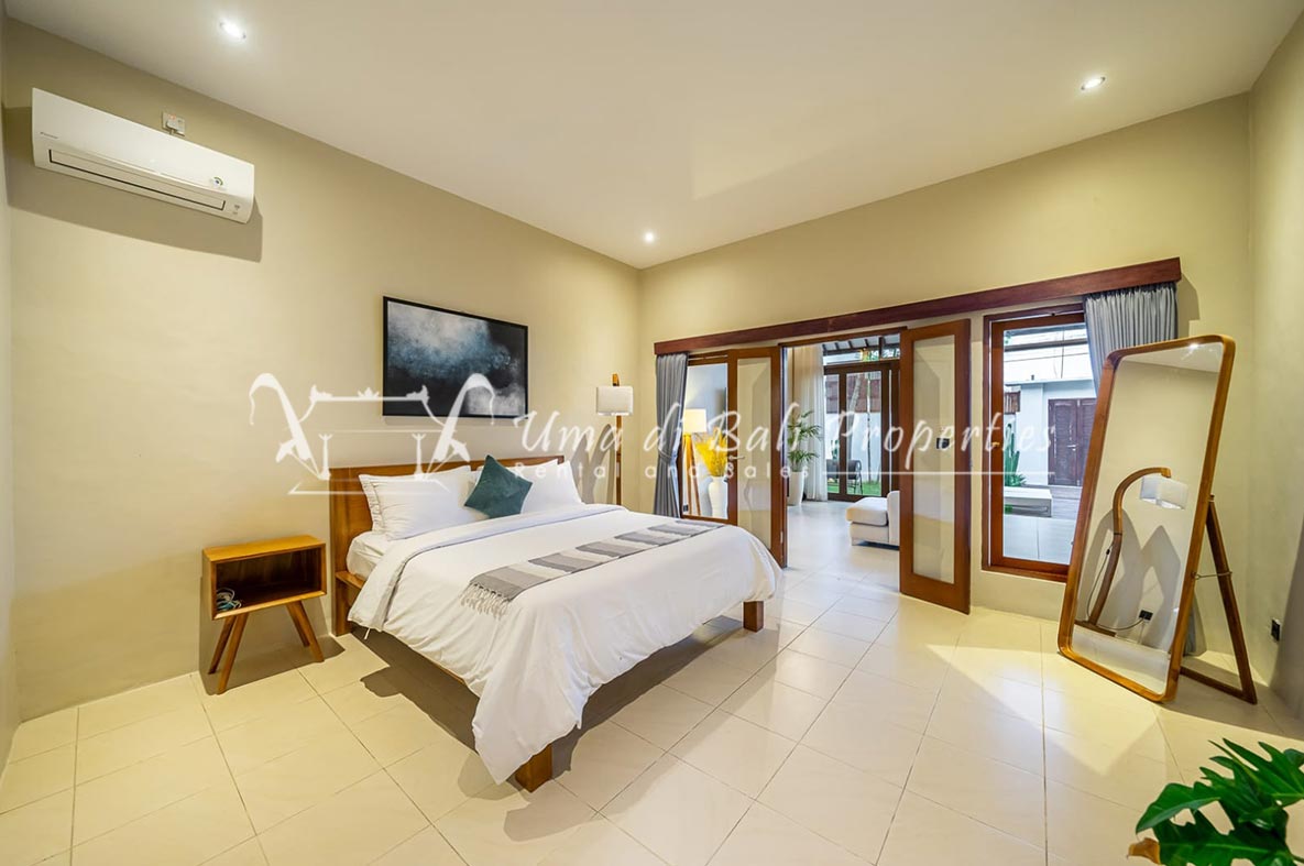 Brand new 3 bedroom villa situated in the nice and quiet area of Umalas is now available for yearly rental. The villa was built on 300 sqm of land size. The villa consists of 3 en-suite bedrooms, an open plan kitchen with closed living space, pool, and parking area.