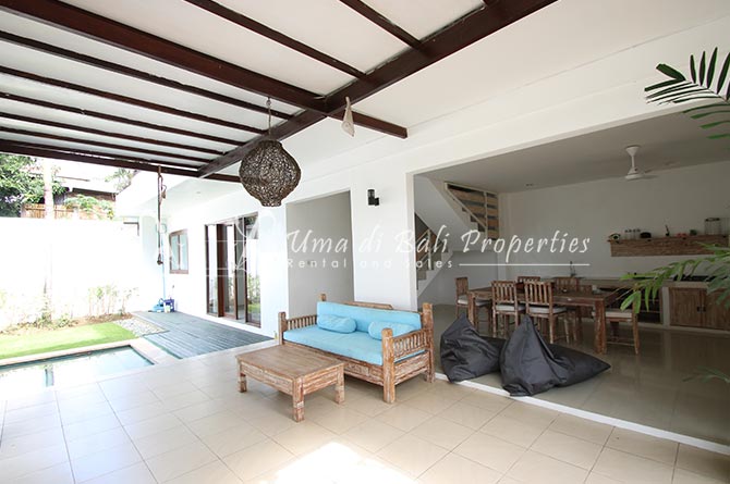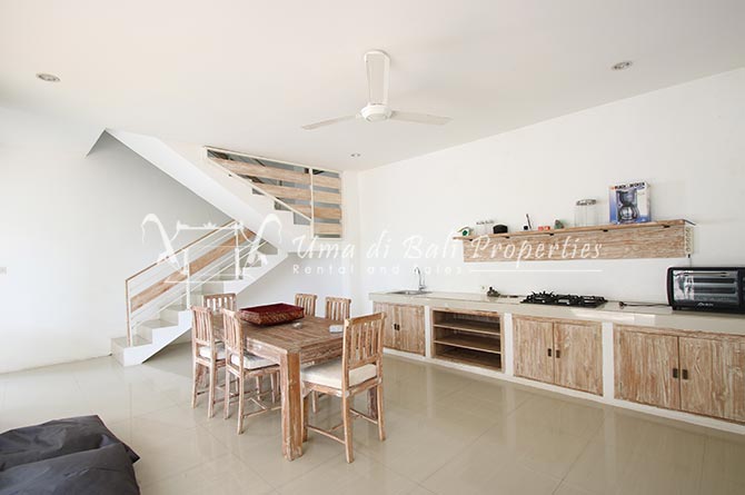 Umalas area is strategically located between Canggu and Seminyak. This area does attract many expatriates, as it offers a lot of beautiful villas in nice and quiet surroundings, as well as cafes, restaurants and shops, although not as many as neighboring areas like Seminyak. Nestled on 250 square meter land size, this fully furnished two-storey villa comes with one bedroom downstairs and two bedrooms upstairs, an equipped kitchen and a swimming pool.