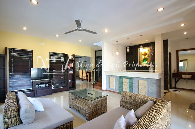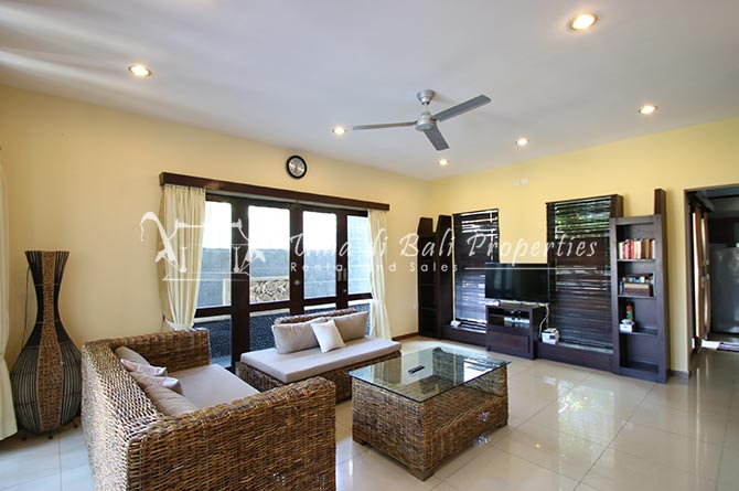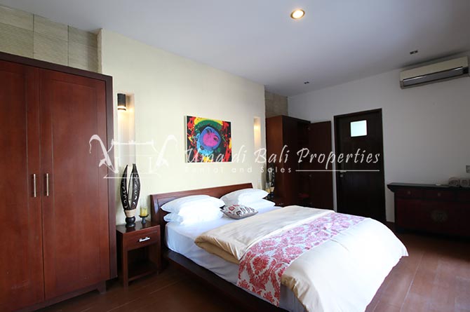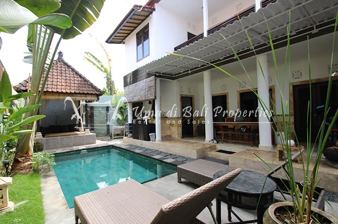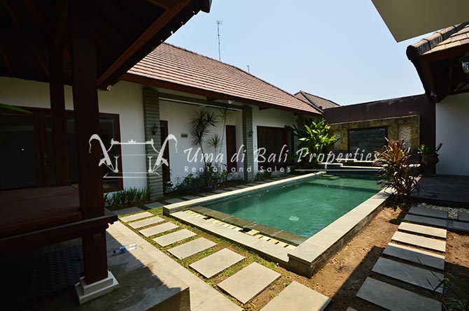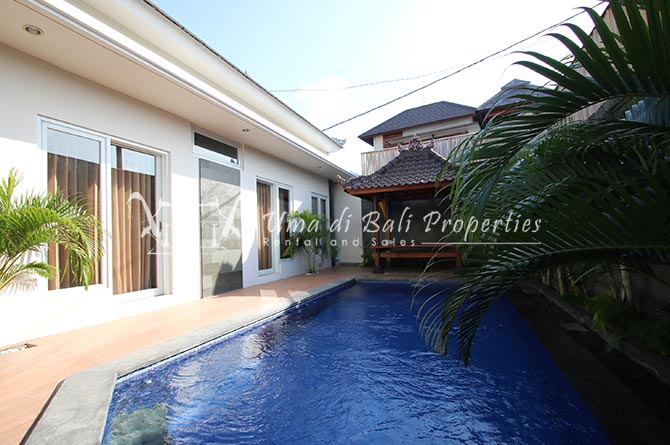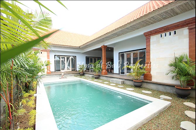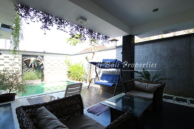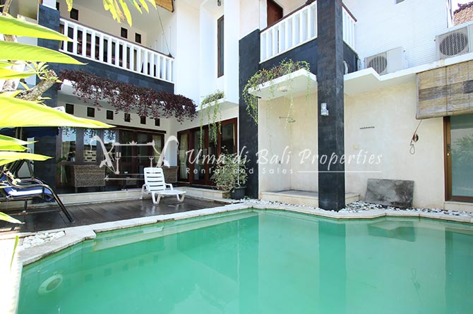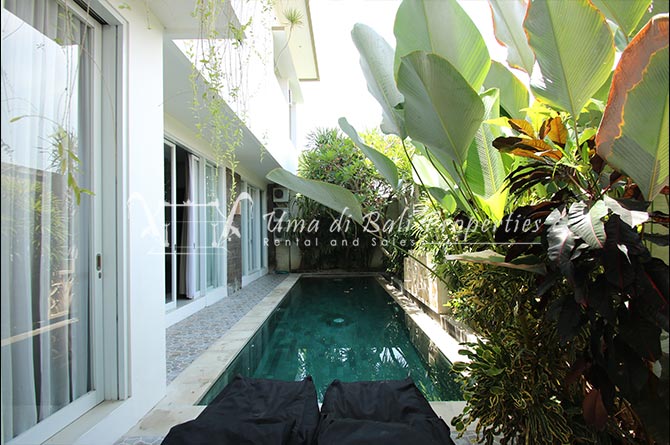 This lovely 3br villa is located in the heart of an attractive area of Berawa, within walking distance to all the nice restaurants, Finns Recreation, Canggu Community School and the nearest Berawa Beach. Built on 250 sqm land in contemporary style, it features 3 spacious bedrooms with ensuite classy bathrooms, enclosed living room, kitchen equipped, storage room, laundry room, and swimming pool. This is one of those properties located on the perfect happening area and suitable for a family who wants to live in such attractive places for their kids yet still with a peaceful ambiance.