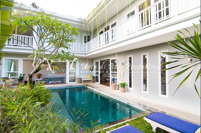 A chic 3 bedroom villa situated in a good area of Petitenget is now available for yearly rental and also for sale. The villa features 3 bedrooms, 2 bathrooms, kitchen, closed living, storage, pool and private parking. Located in a quiet safe house complex with one gate system, make this property is the perfect nest for you and your family to experience the lay back Bali lifestyle. Walking distance to the nearest cafes and restaurants or within short drives to many attractions around Petitenget, the famous Oberoi street as well as Batu Belig. With modern designed and furnishing brings warmth and comfort for anyone who stays. Enjoy your life living in Bali and rent this chic villa. Villa Shirina is available on the market for sale.