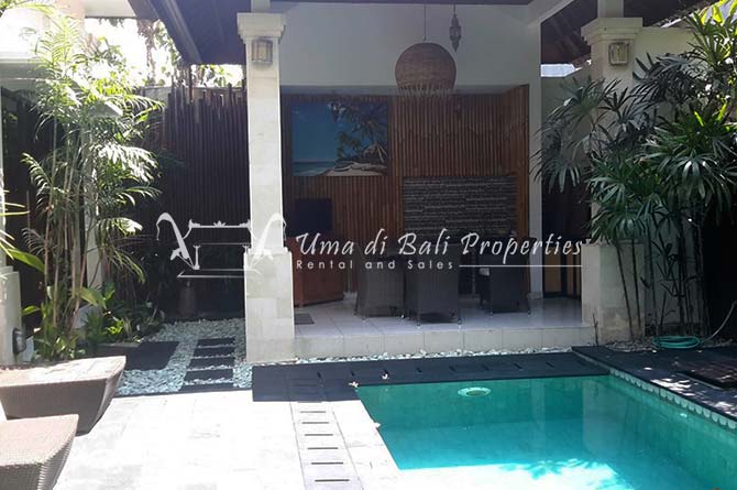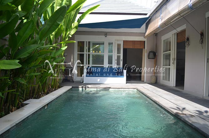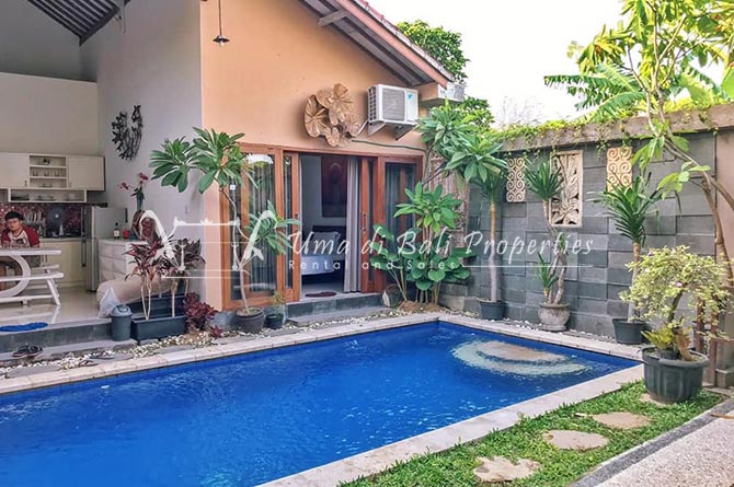 Cozy 2 bedroom villa located in the nice neighborhood of Canggu area is now available for yearly rental. The villa built on 170 sqm of land size. The villa consists of 2 en-suite bedrooms, equipped kitchen, open living, pool, garden, and parking space.