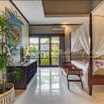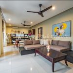 This villa offers 2 bedrooms, 2 bathrooms, storage room and a guest toilet. Situated with one level and open plan living viewed to the tropical look of newly planted plants in the swimming pool area.