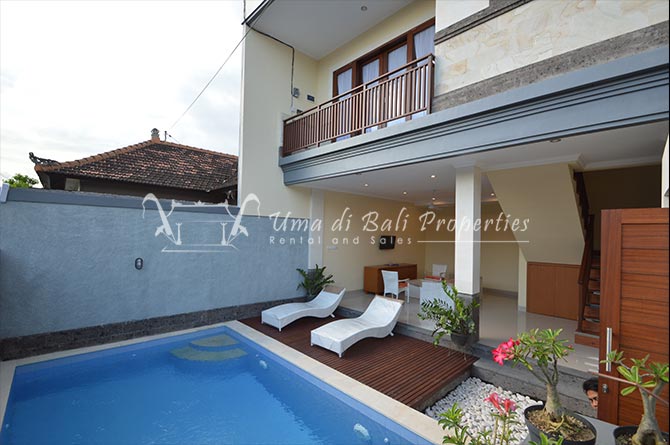 This two-bedroom property with ensuite bathrooms, sits on 150 sqm of land is a perfect place for a family who is looking for a modern 2 bedroom house with an open plan living, modern furnishing, equipped kitchen and pool. You can enjoy your new andventure in the islend of Gods by renting this property for your temporary home in Bali.