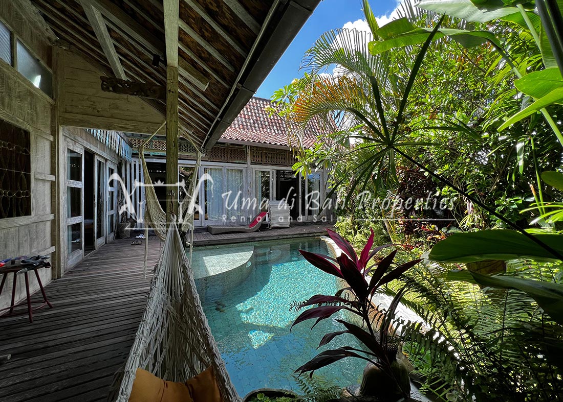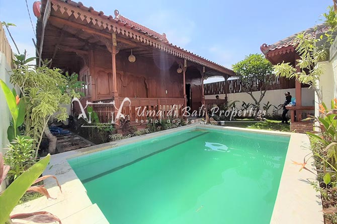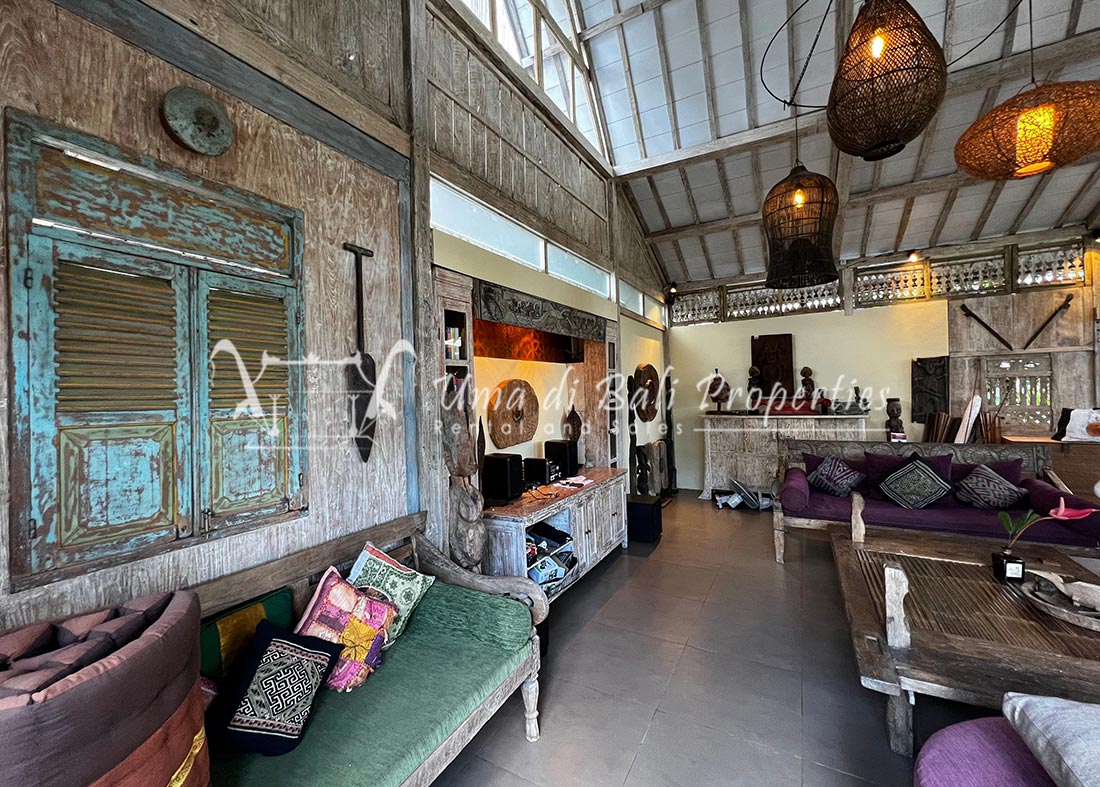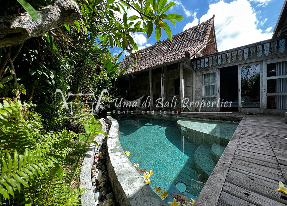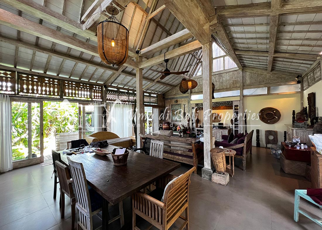 Situated in a tranquil and safe area of Canggu, this new built natural vintage Joglo style featuring 3 bedrooms with tropical garden, swimming pool, spacious and bright living area with great view over the garden area and adjacent rice-field.