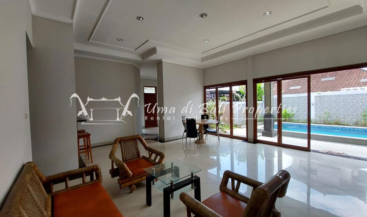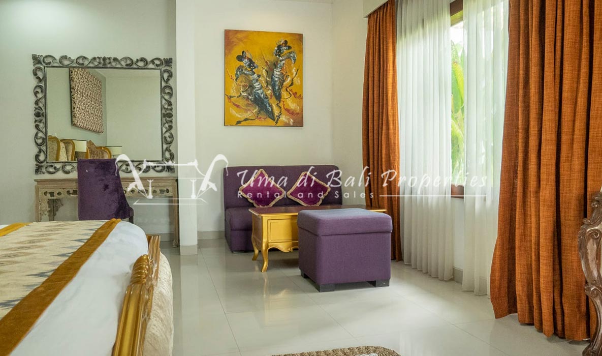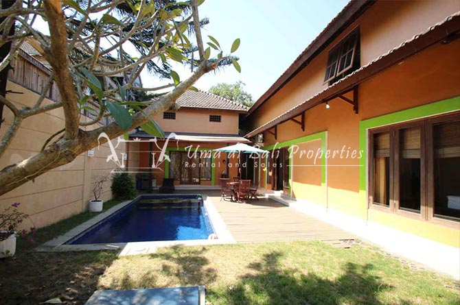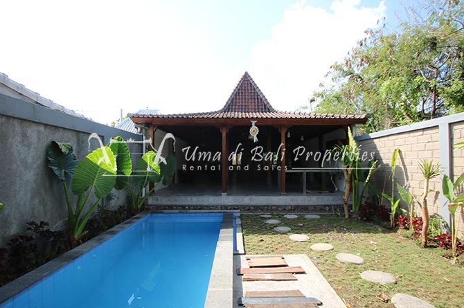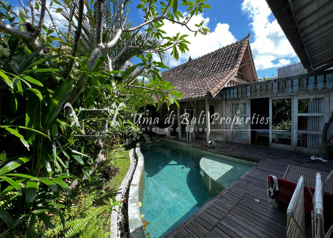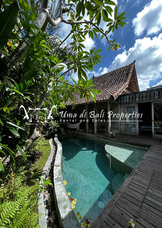 Situated in a tranquil and safe area of Canggu, this new built natural vintage Joglo style featuring 3 bedrooms with tropical garden, swimming pool, spacious and bright living area with great view over the garden area and adjacent rice-field.