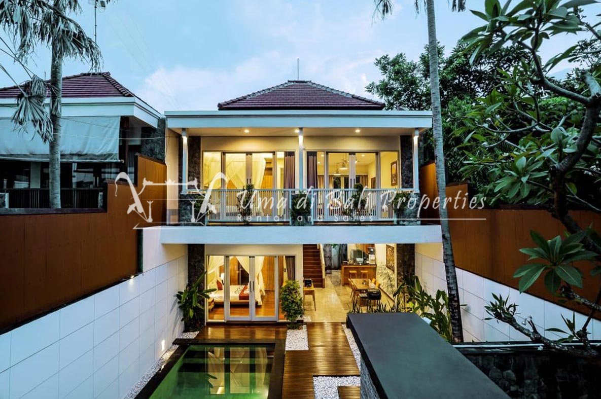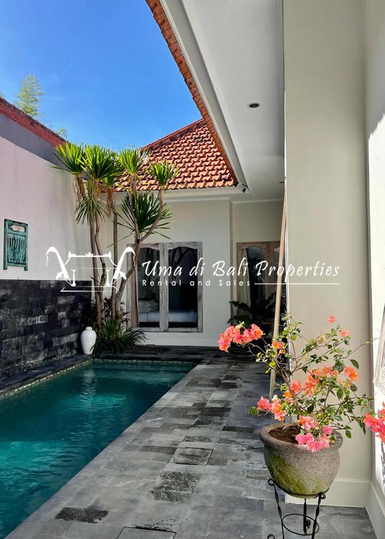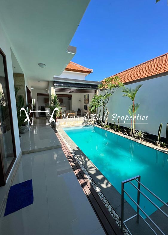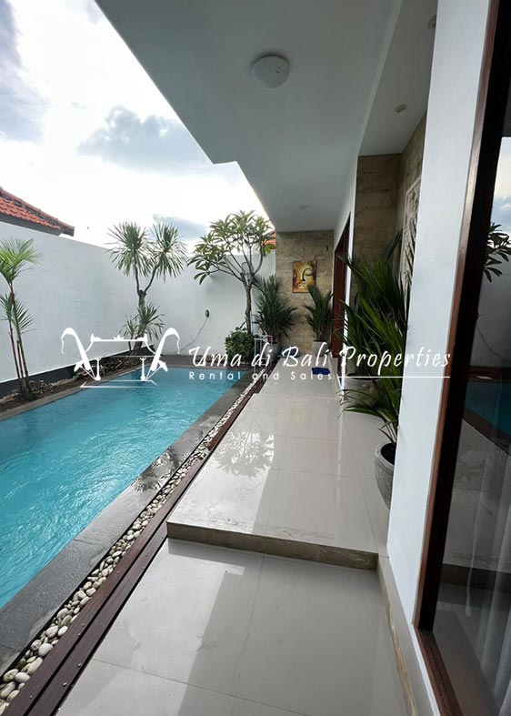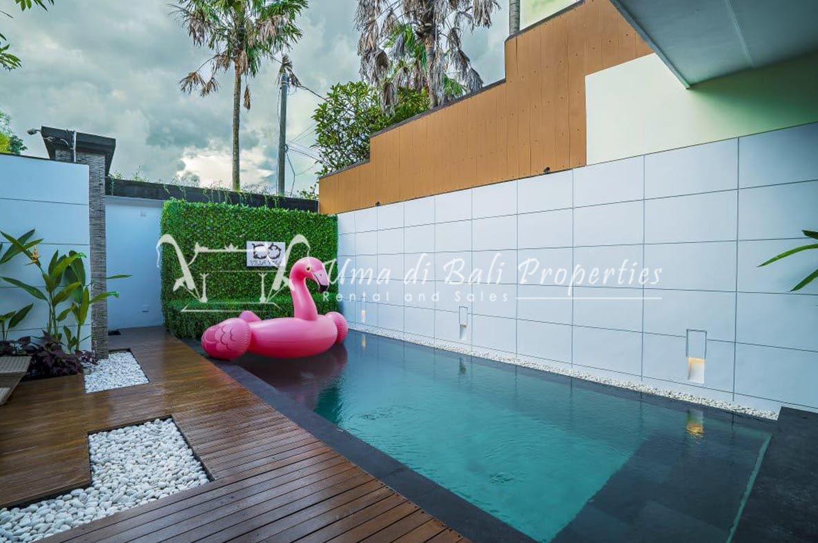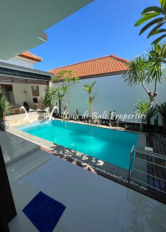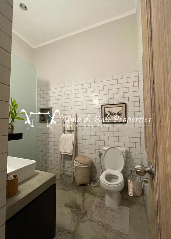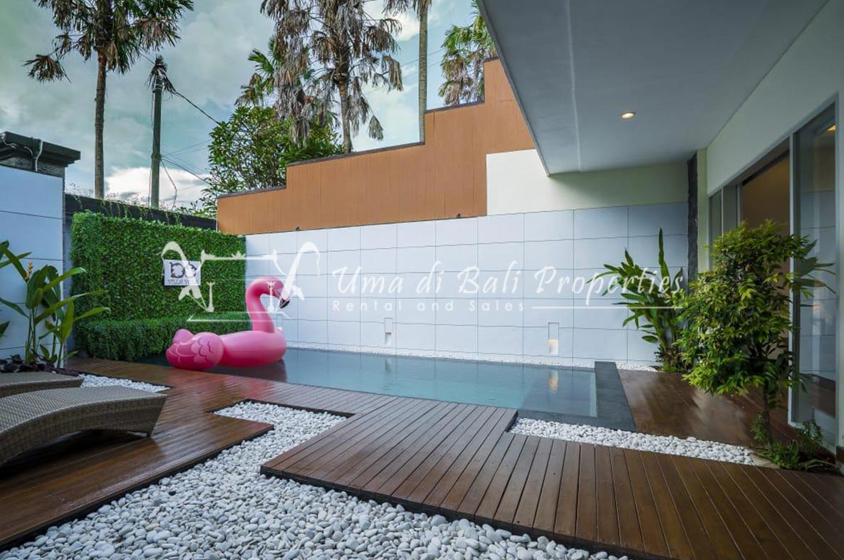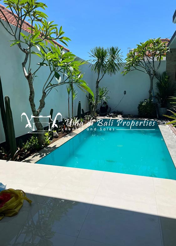This three-bedroom brand new villa is located in a peaceful neighborhood of Pererenan. Built on 300 sqm land size in a minimalist design which gives a homey feeling, this villa features 3 bedrooms with 1 bedroom upstairs and 2 bedrooms downstairs, en-suite bathrooms, kitchen, dining area, a swimming pool, parking area, and an open plan living room which brings natural light and fresh air circulation. This villa is perfect for those who want to live in a peaceful and secure area. It only takes 5 minutes to drive to Pererenan beach, Batu Bolong area, 15 minutes drive to reach Montessori school and 25 minutes drive to reach Green school.