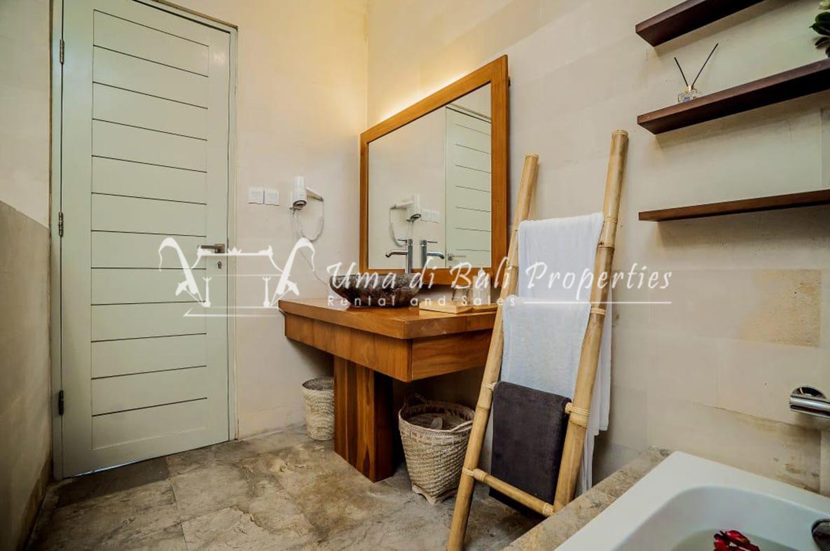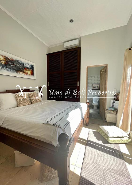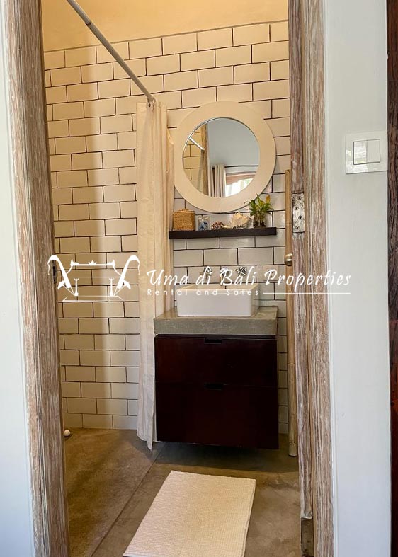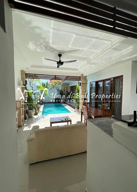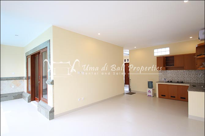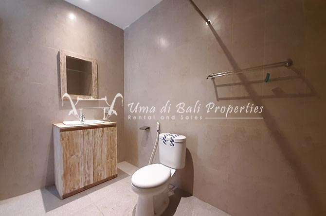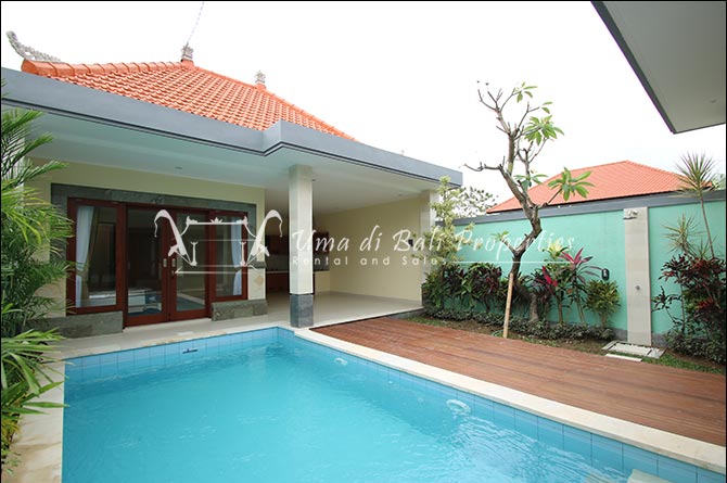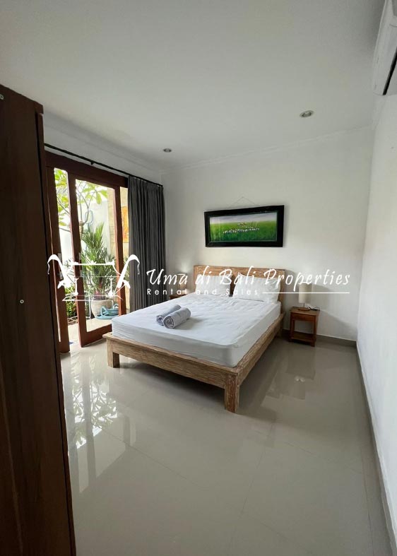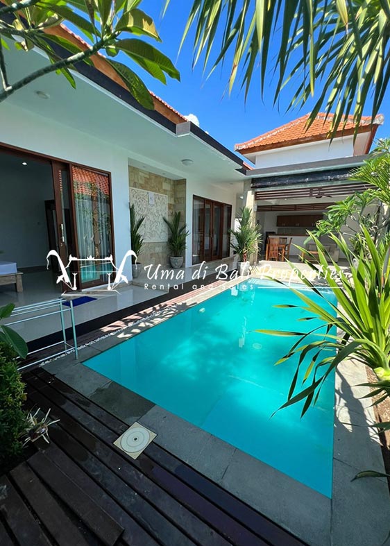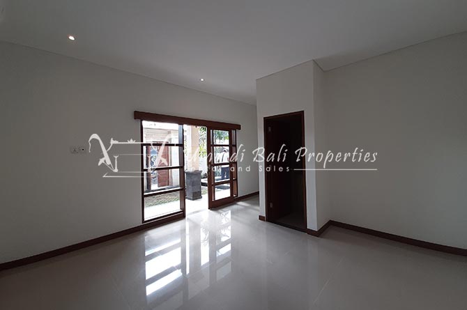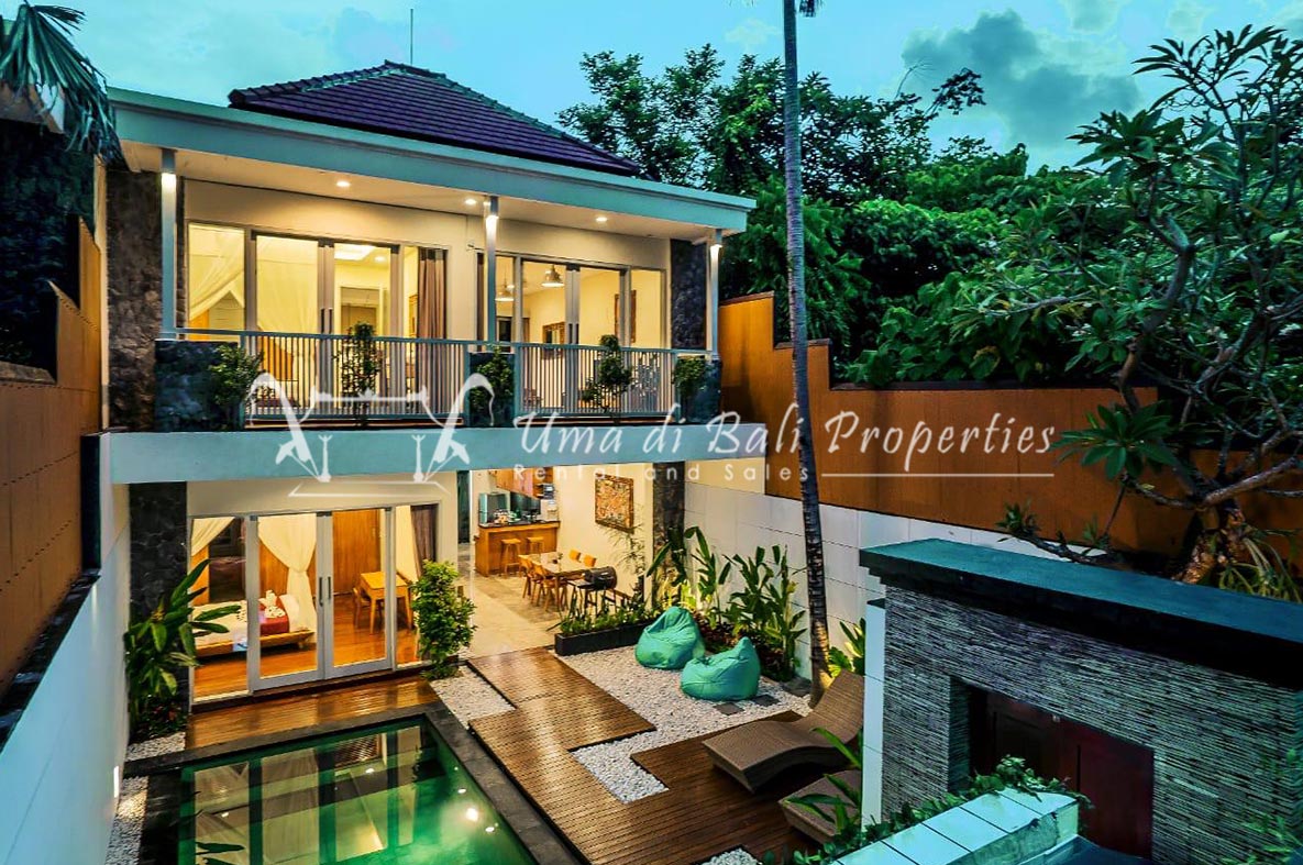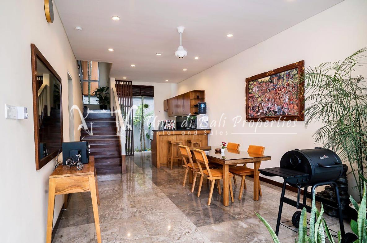 This three-bedroom brand new villa is located in a peaceful neighborhood of Pererenan. Built on 300 sqm land size in a minimalist design which gives a homey feeling, this villa features 3 bedrooms with 1 bedroom upstairs and 2 bedrooms downstairs, en-suite bathrooms, kitchen, dining area, a swimming pool, parking area, and an open plan living room which brings natural light and fresh air circulation. This villa is perfect for those who want to live in a peaceful and secure area. It only takes 5 minutes to drive to Pererenan beach, Batu Bolong area, 15 minutes drive to reach Montessori school and 25 minutes drive to reach Green school.