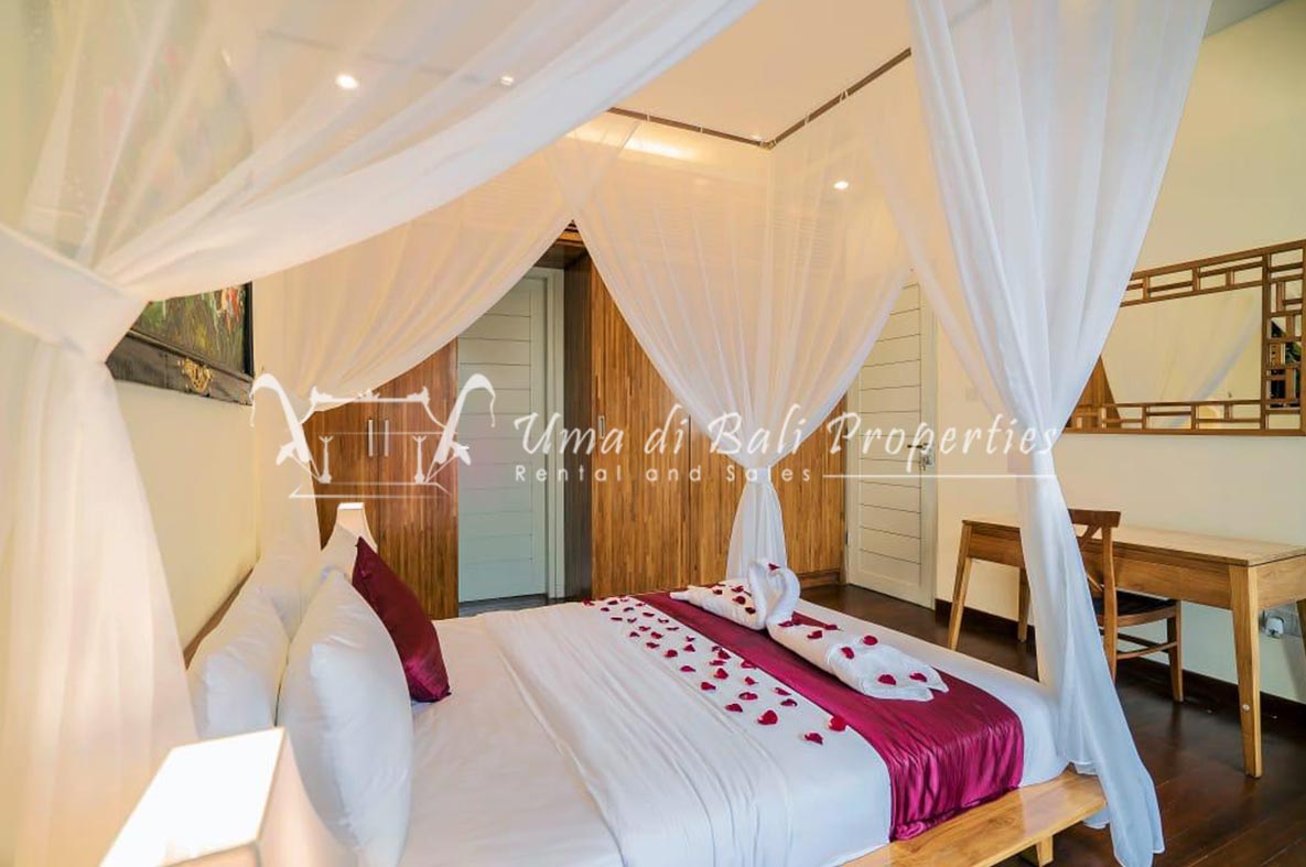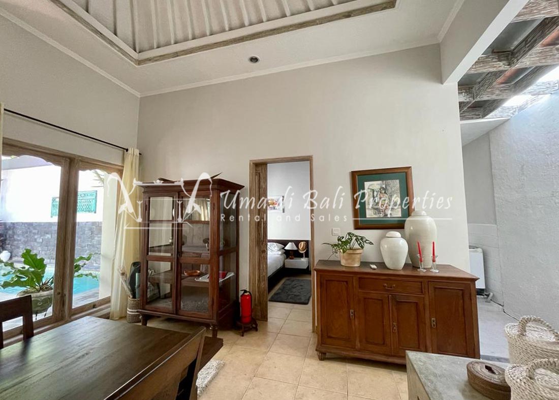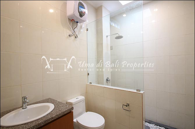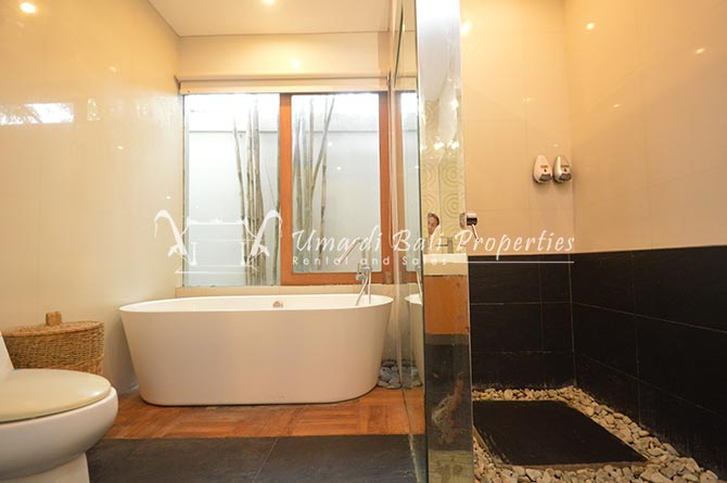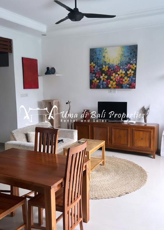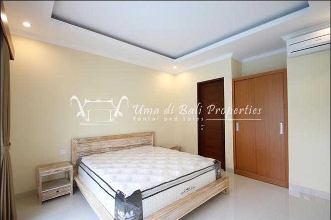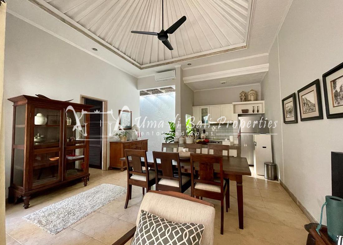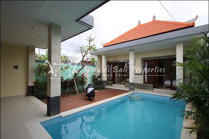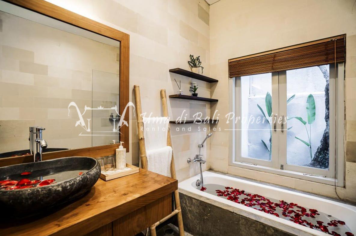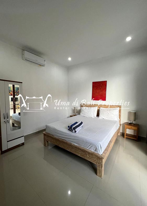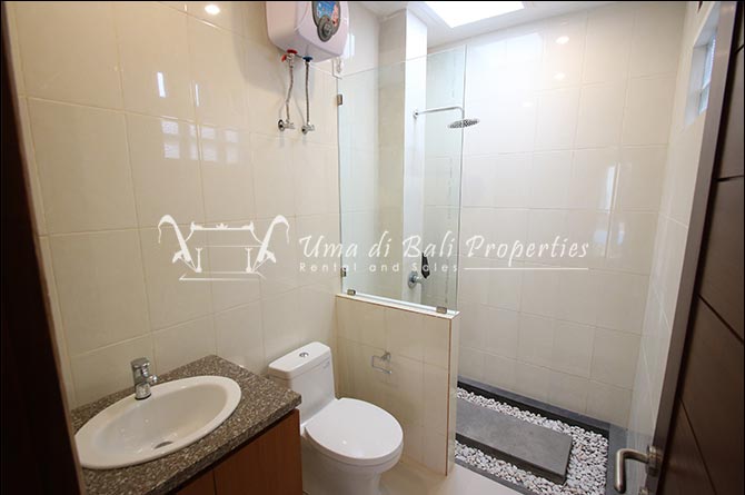 This three-bedroom brand new villa is located in a peaceful neighborhood of Pererenan. Built on 300 sqm land size in a minimalist design which gives a homey feeling, this villa features 3 bedrooms with 1 bedroom upstairs and 2 bedrooms downstairs, en-suite bathrooms, kitchen, dining area, a swimming pool, parking area, and an open plan living room which brings natural light and fresh air circulation. This villa is perfect for those who want to live in a peaceful and secure area. It only takes 5 minutes to drive to Pererenan beach, Batu Bolong area, 15 minutes drive to reach Montessori school and 25 minutes drive to reach Green school.