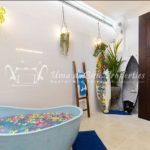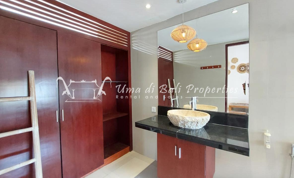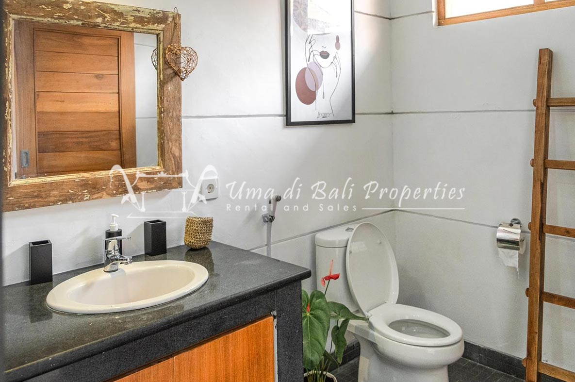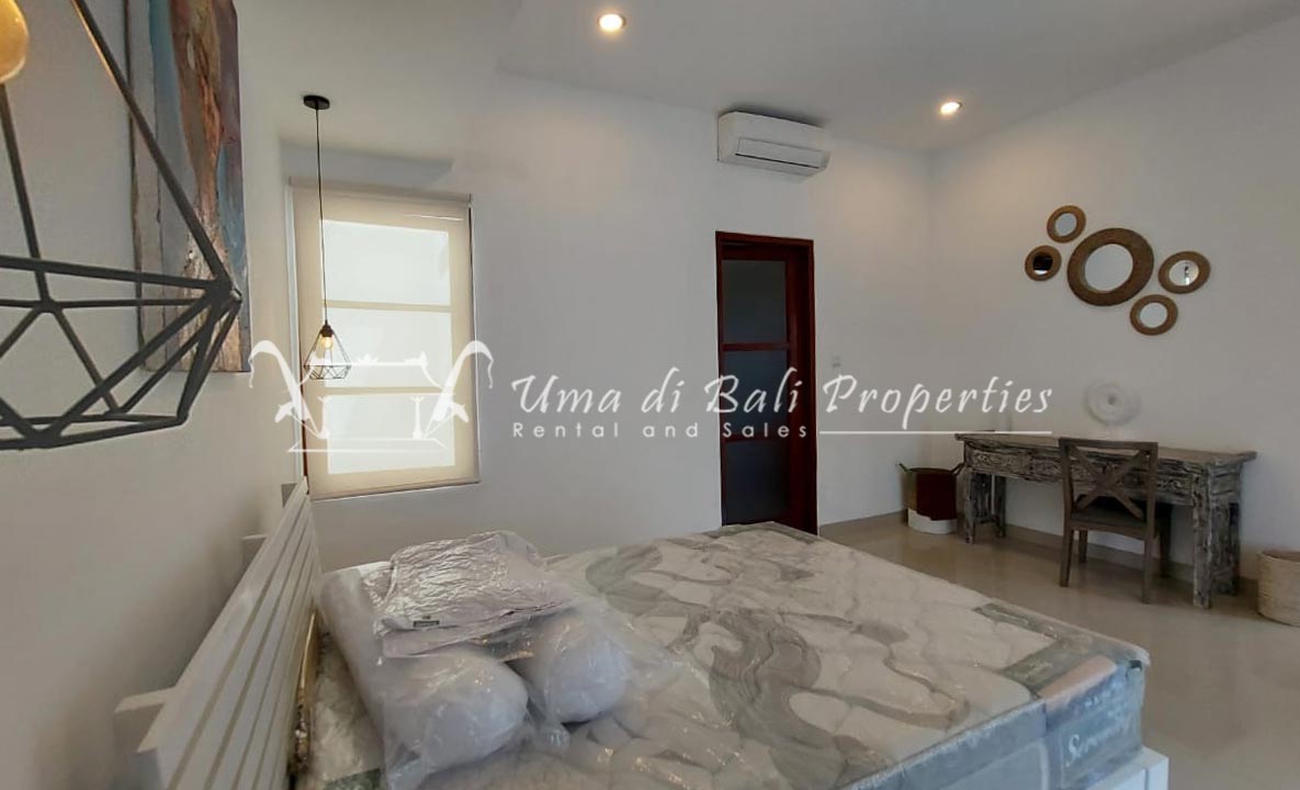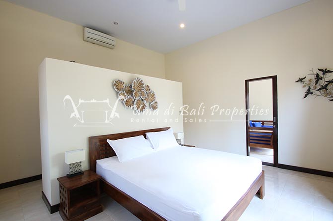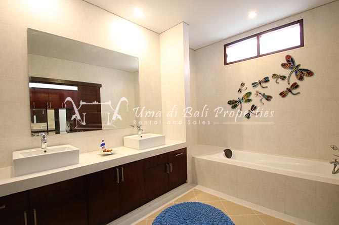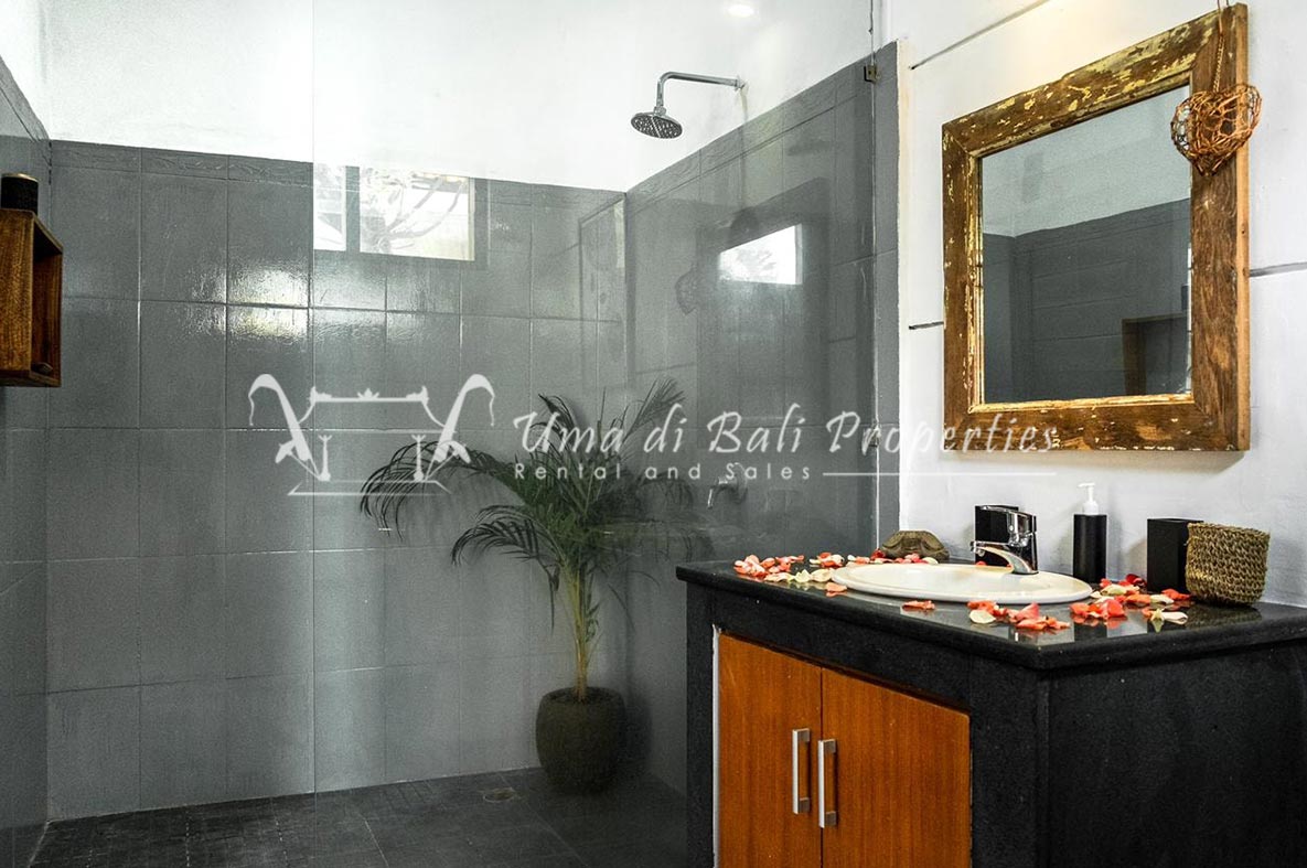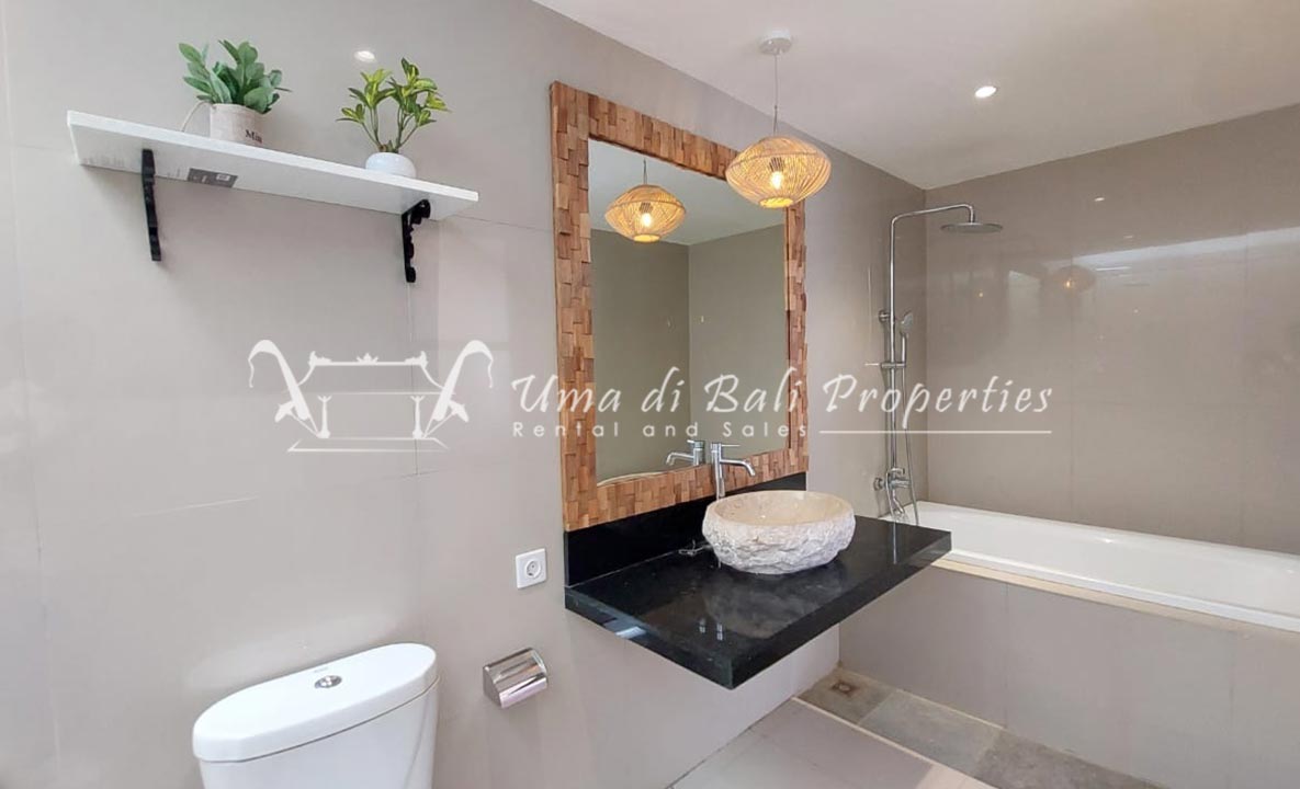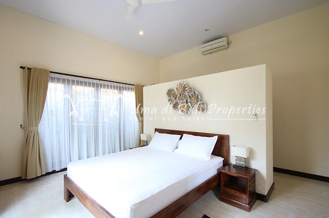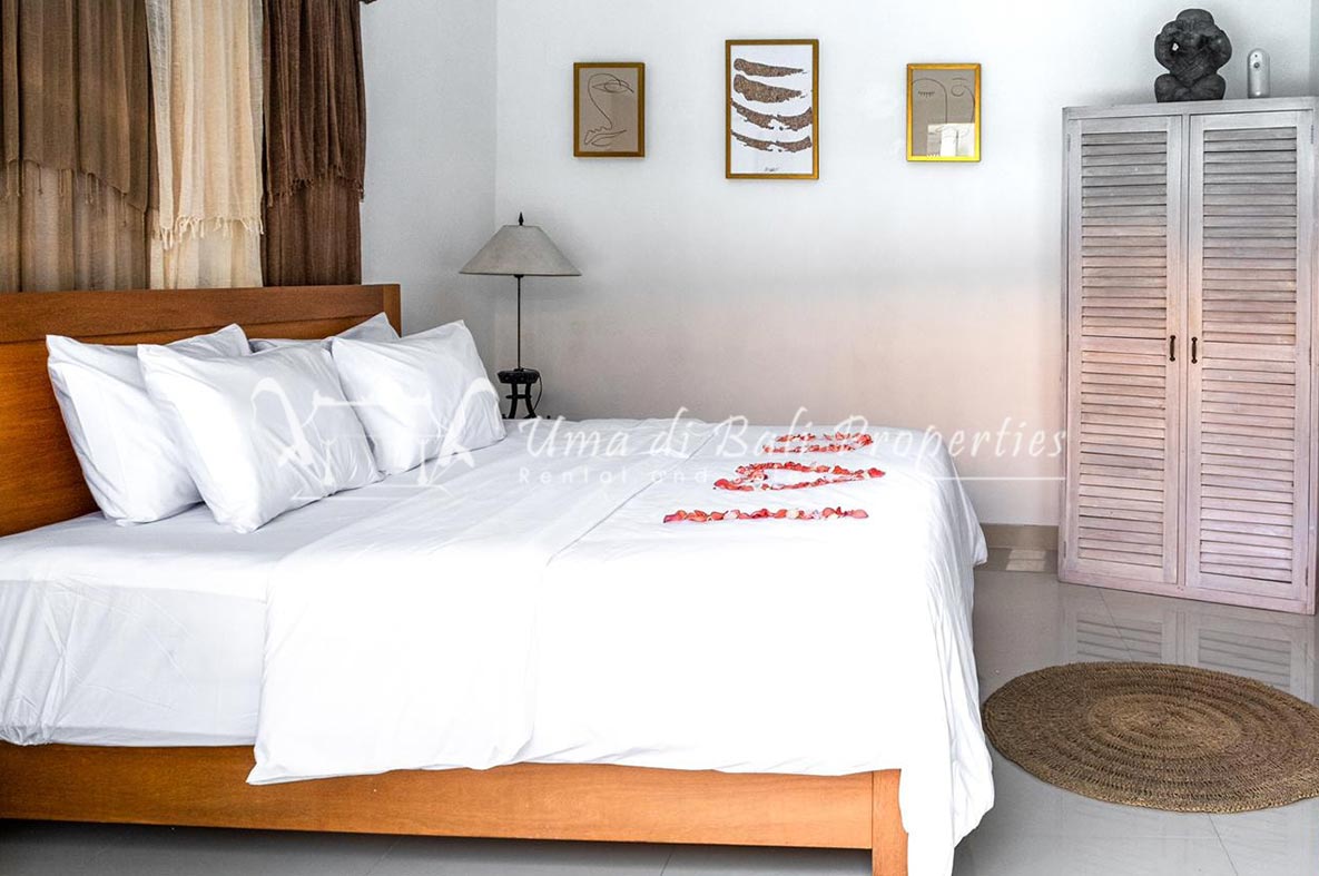 Gorgeous 4 bedroom villa nestled in a lovely neighbourhood of Umalas is available for monthly and yearly rental. The villa set on 400 sqm of land size. Its features 4 en-suite bedrooms, fully equipped kitchen, closed living room, mezzanine can be converted as a guest room or play room, terrace with massage bed, laundry room with guest toilet, pool, garden and private parking.